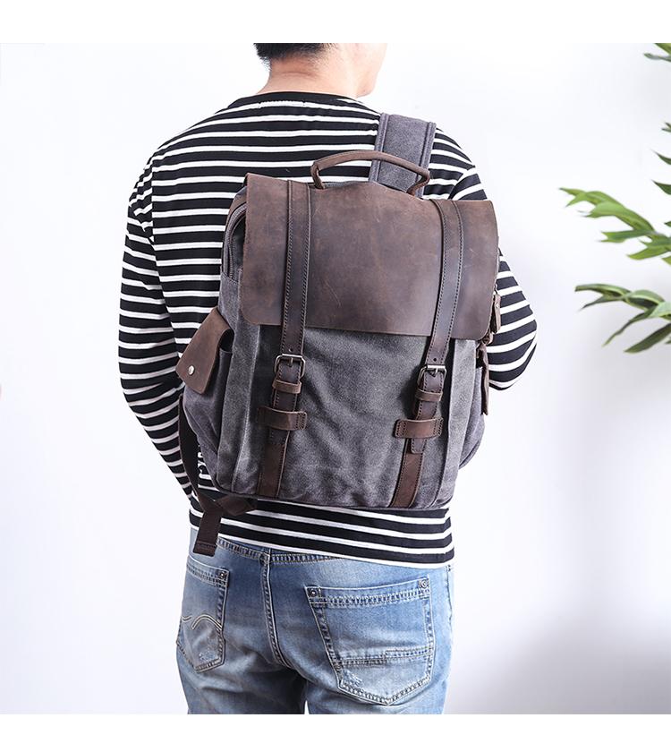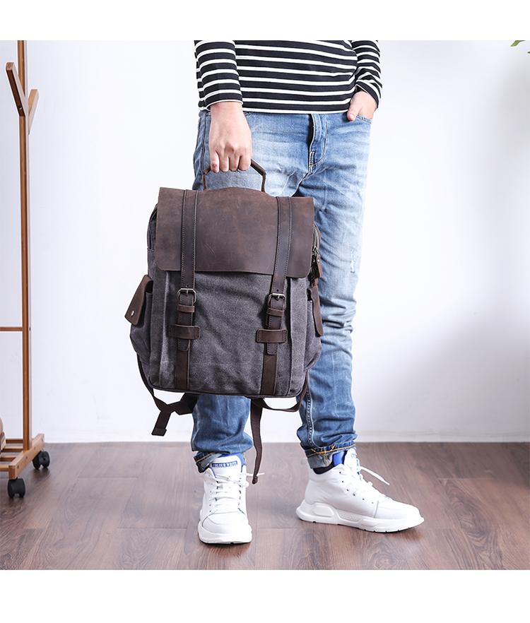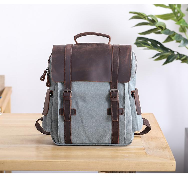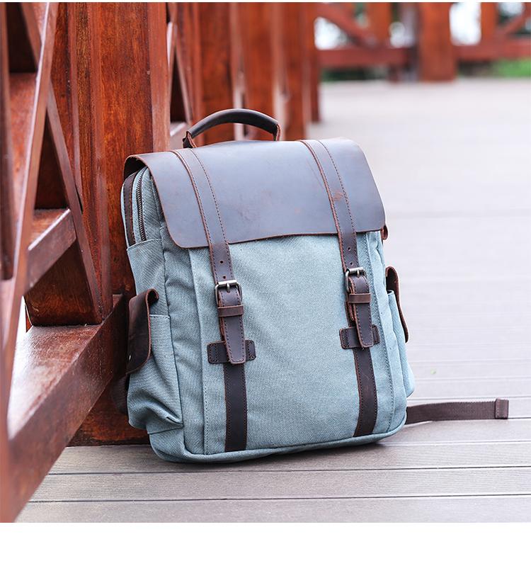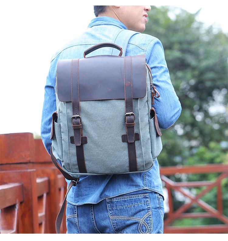 Style: Lake Green Waxed Canvas Mens Large 15'' Laptop Backpack College Backpack Hiking Backpack for Men