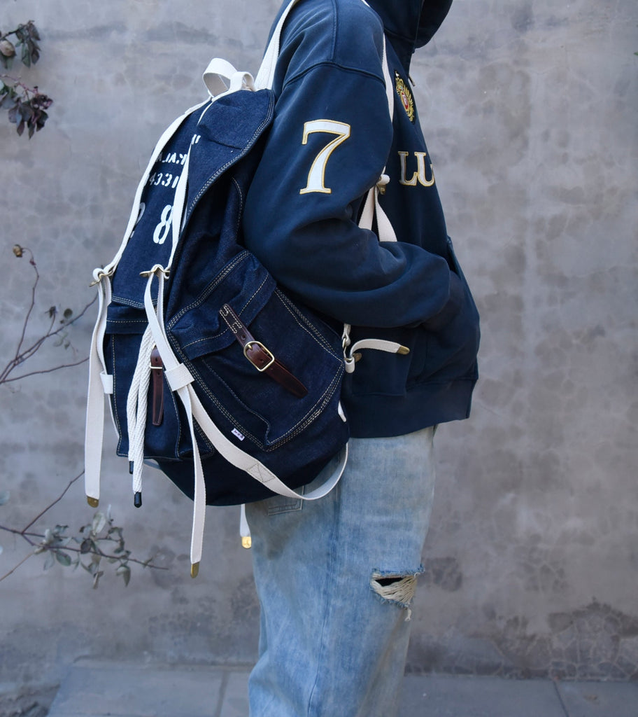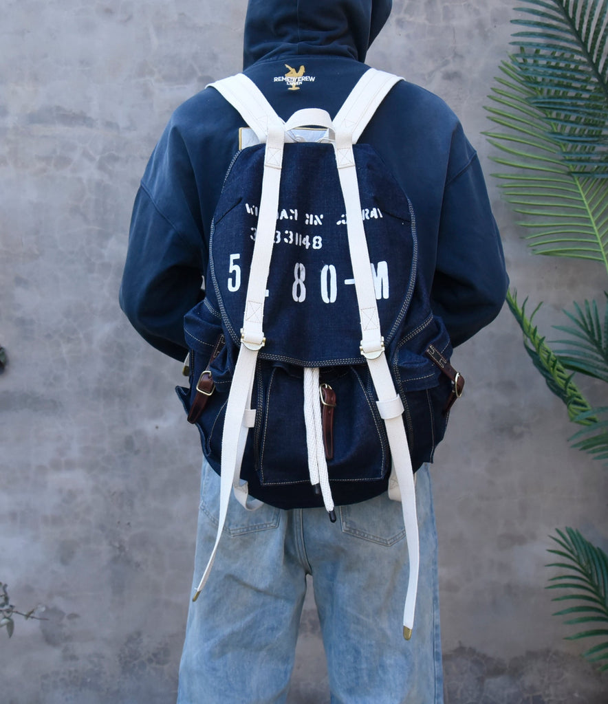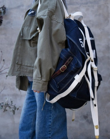 Design: Blue Jean Backpack Mens Huge Backpack Large Blue&White Denim Backpack for Men