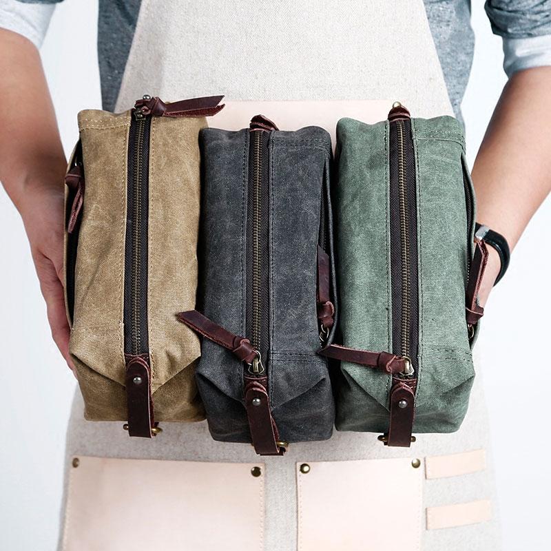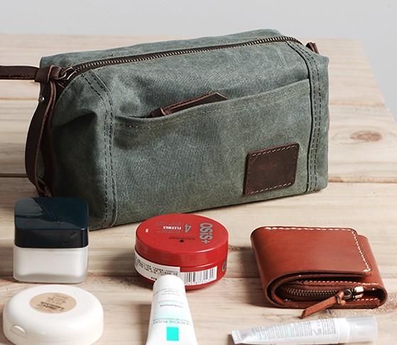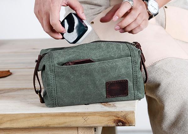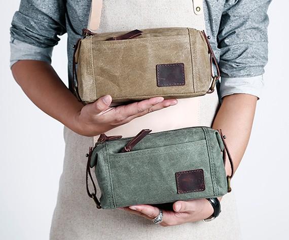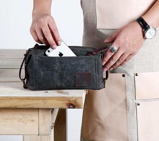 Design: Large Canvas Leather Mens Clutch Bag Zipper Wristlet Bag Purse for Men