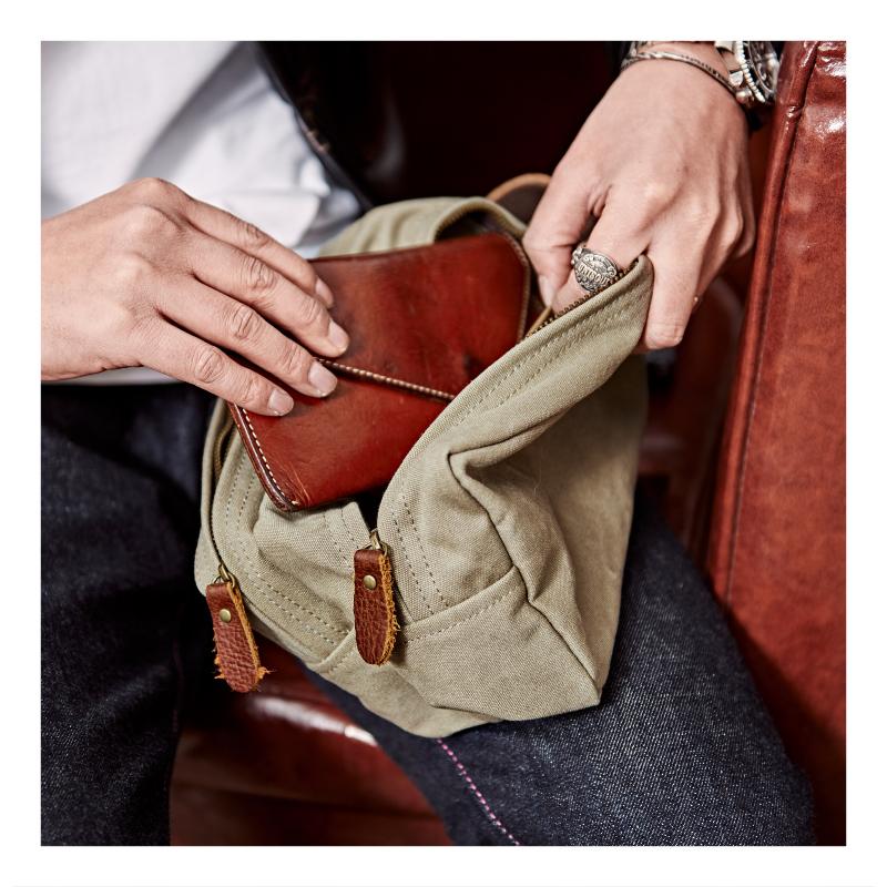 Design: Large Canvas Leather Mens Clutch Bags Zipper Wristlet Bag Purse for Men