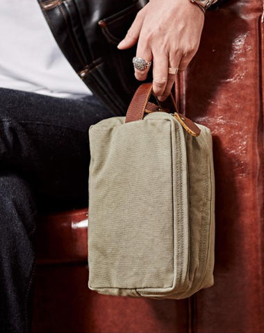 Style: Large Canvas Leather Mens Clutch Bags Zipper Wristlet Bag Purse for Men