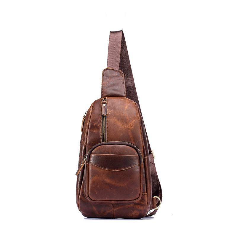 Style: Cool Brown Leather Men's Sling Bag Chest Bag Vintage One Shoulder Backpack For Men