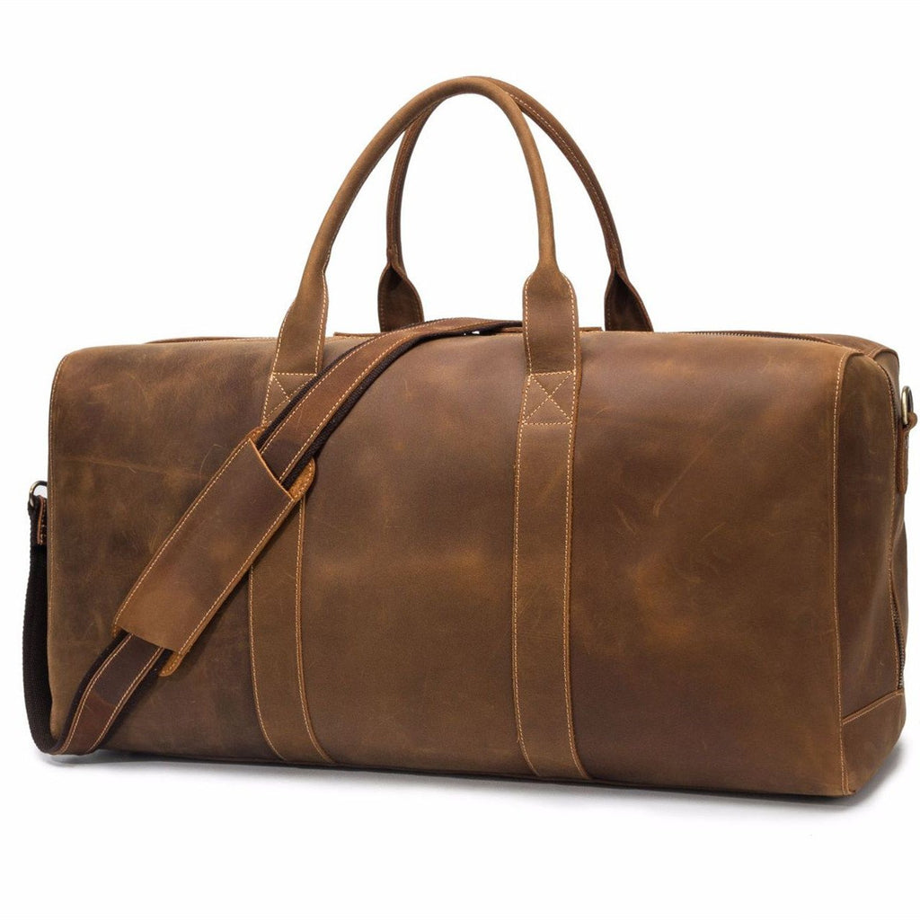 Design: Vintage Brown Leather Men's Travel Bag Overnight Bag Weekender Bag For Men