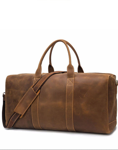 Style: Vintage Brown Leather Men's Travel Bag Overnight Bag Weekender Bag For Men