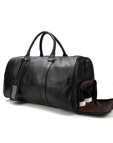 Design: Cool Black Large Leather Men's Overnight Bag Weekender Bag Travel Luggage Bag For MenOverview: