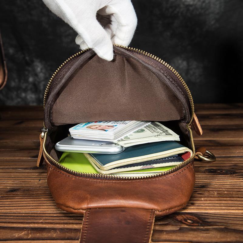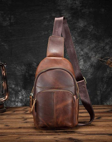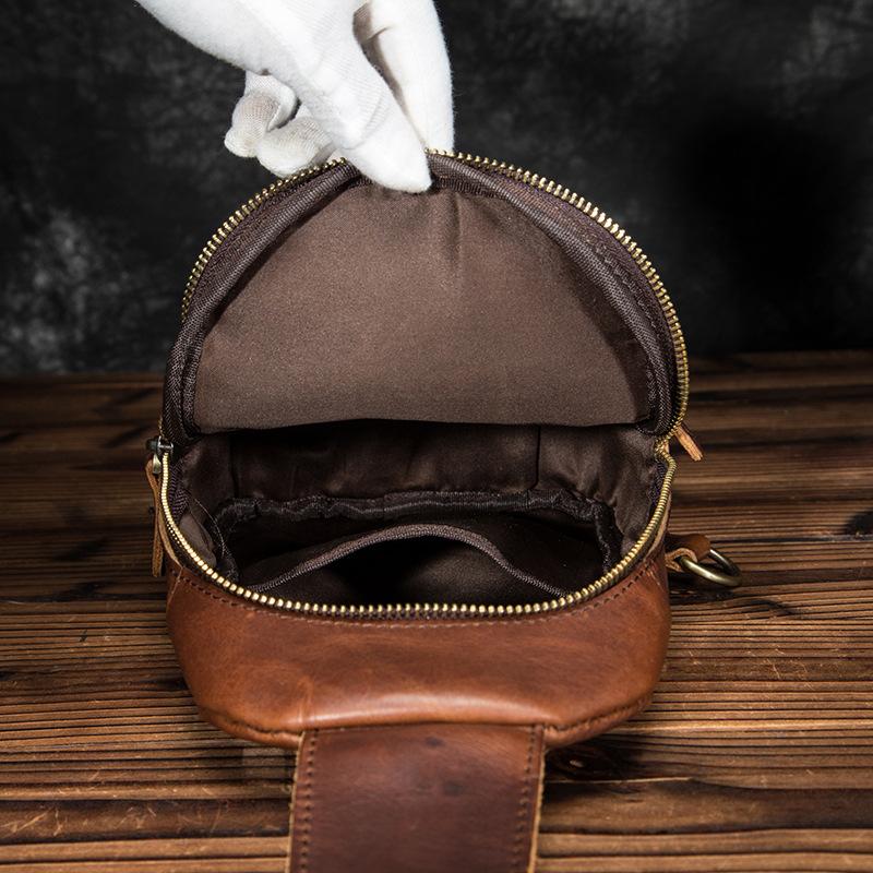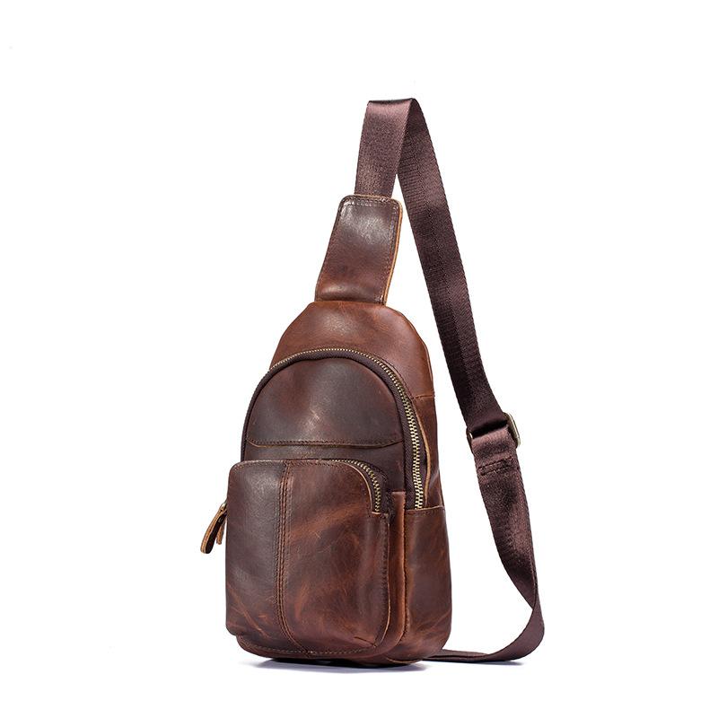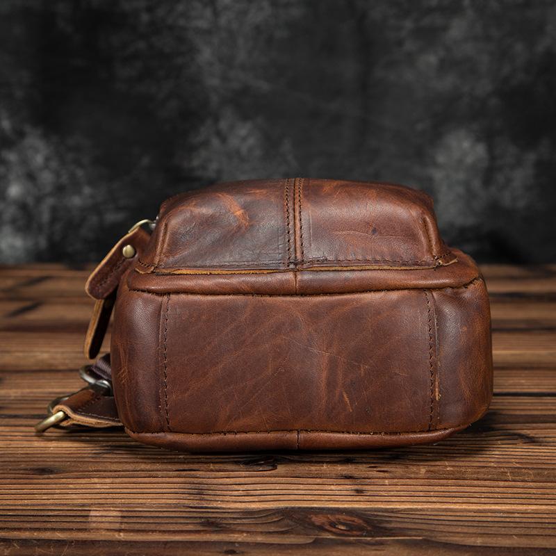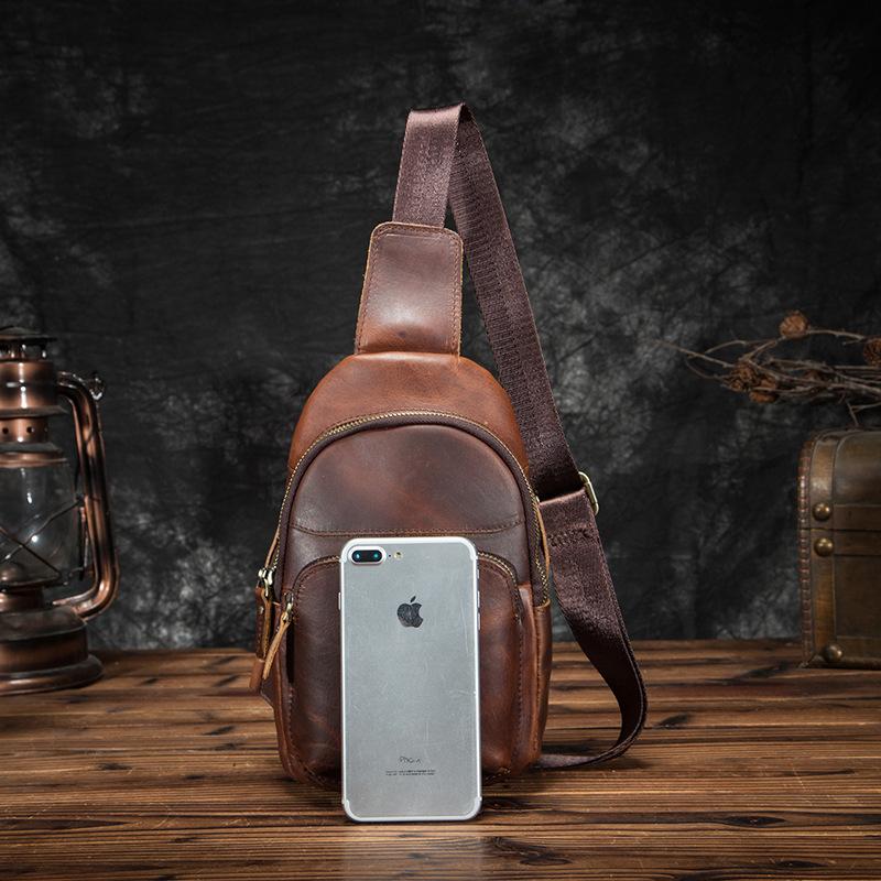 Design: Cool Vintage Leather Mens Sling Bag Chest Bag Vintage One Shoulder Backpack For Men