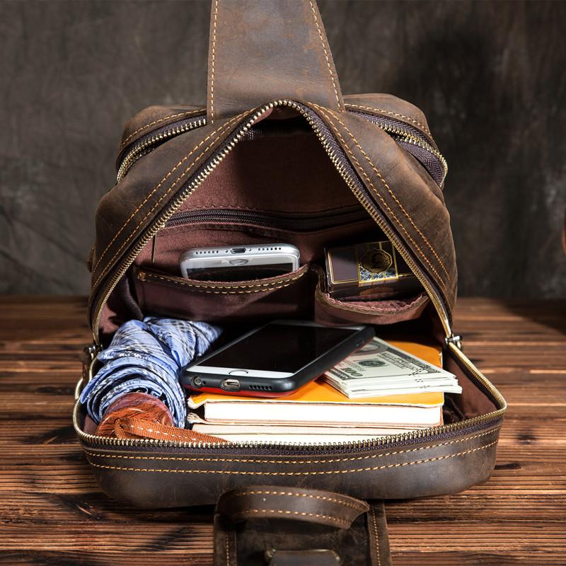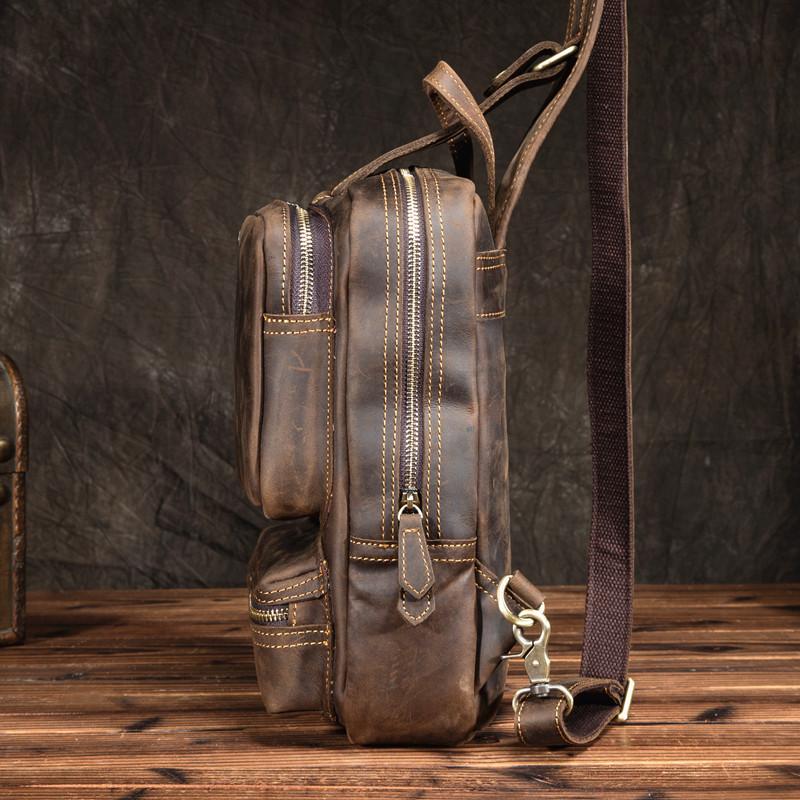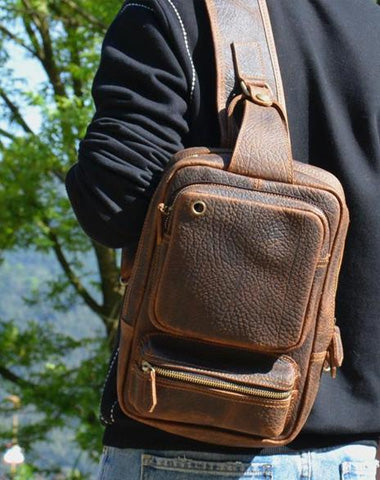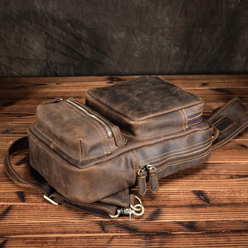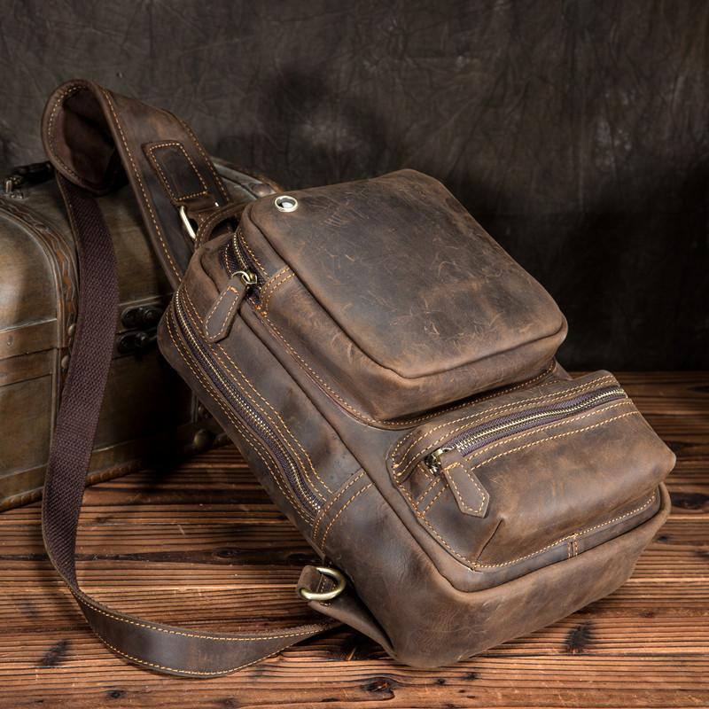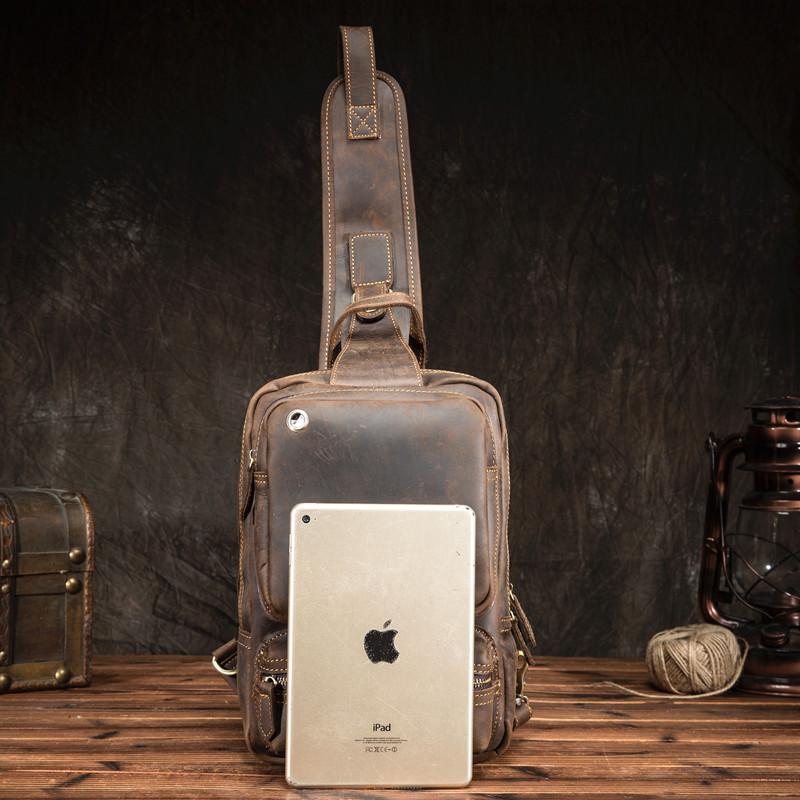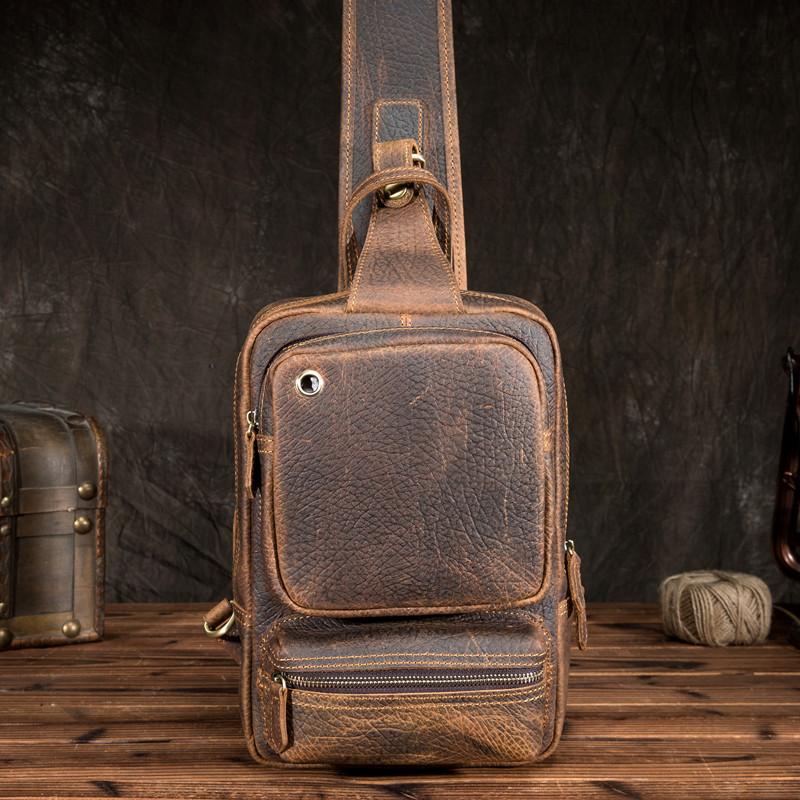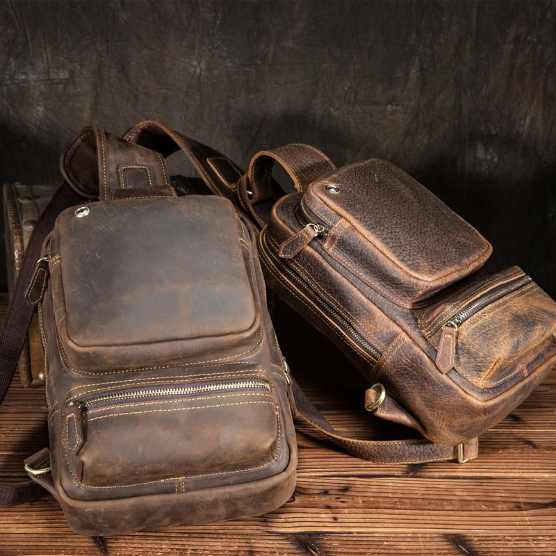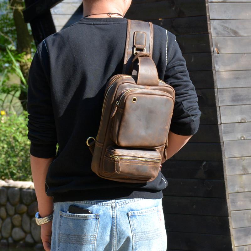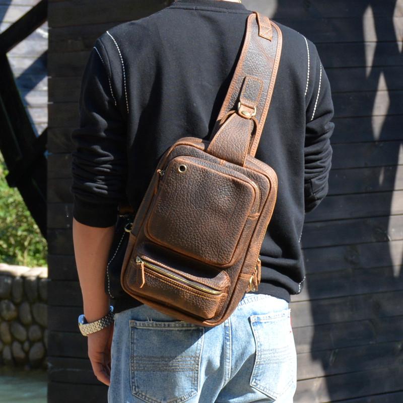 Design: Cool MENS LEATHER CHEST BAGS SLING BAGs ONE SHOULDER BACKPACK FOR MEN