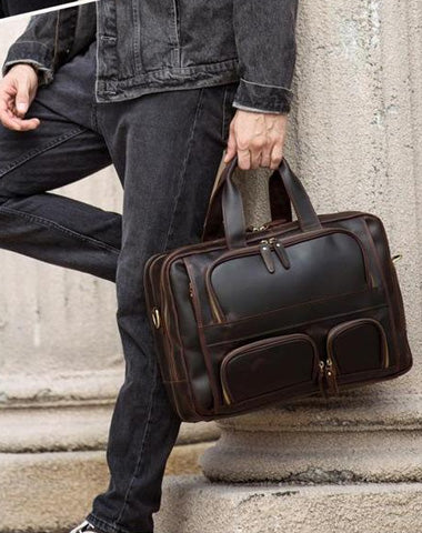 Vintage Leather Men's Briefcase 15‘’ Laptop Briefcase Professional Bag For Men