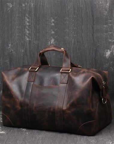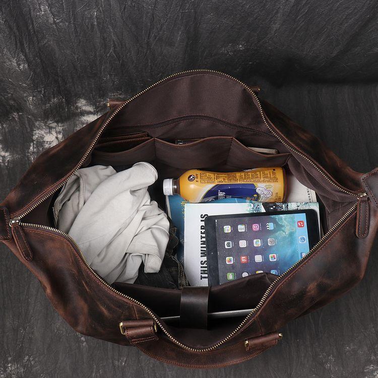 Design: Vintage Large Leather Men's Travel Bag Overnight Bag Weekender Bag For MenOverview: