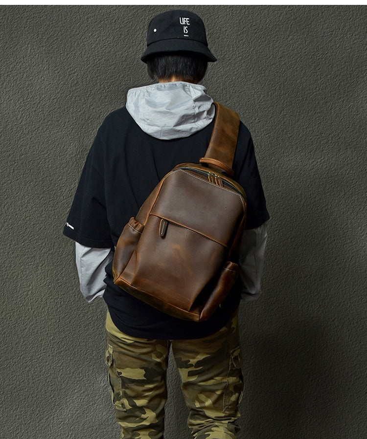 Style: Large Leather Mens Sling Bag Black Sling Shoulder Bag Sling Backpack for men