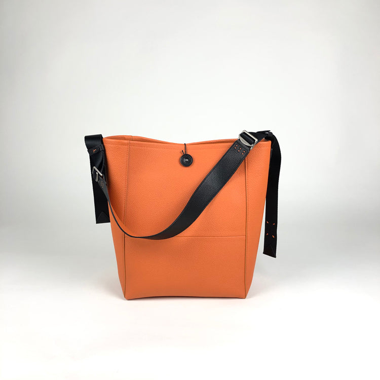 Design: Large Womens Orange Leather Shoulder Barrel Tote Bag Bucket Tote Handbag Purse Work Bag for Ladies