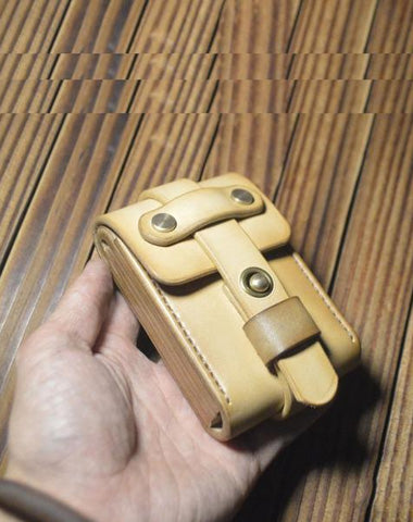 Style: Leather Beige Mens Cigarette Case Cigarette Holder Belt Pouch with Belt Loop for Men