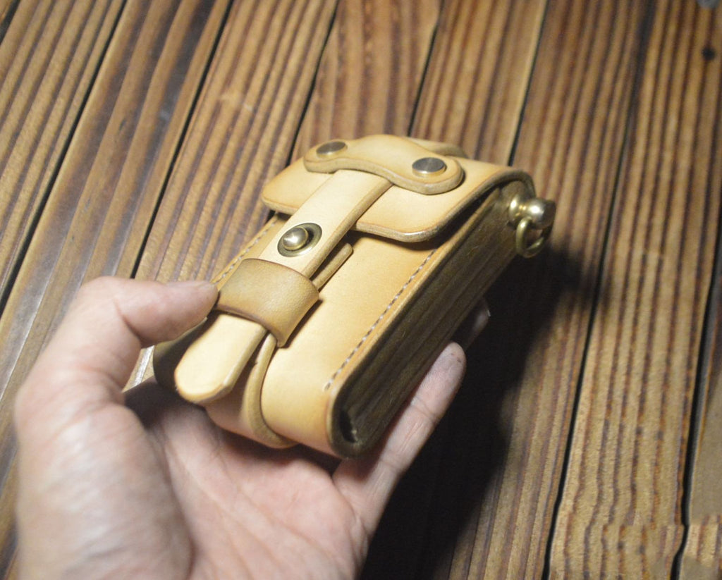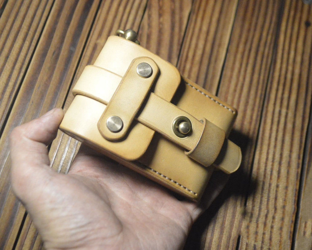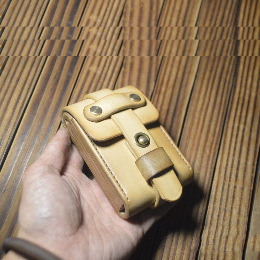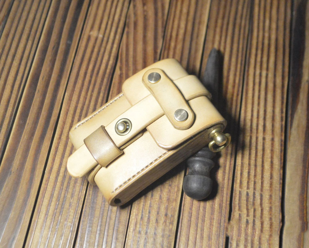 Design: Leather Beige Mens Cigarette Case Cigarette Holder Belt Pouch with Belt Loop for Men