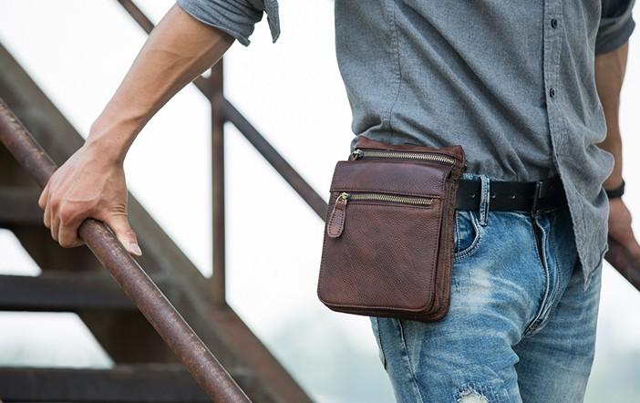 Design: Leather Belt Pouch Belt Cases Mens Waist Bag Shoulder Bag for Men