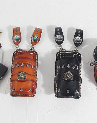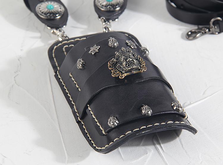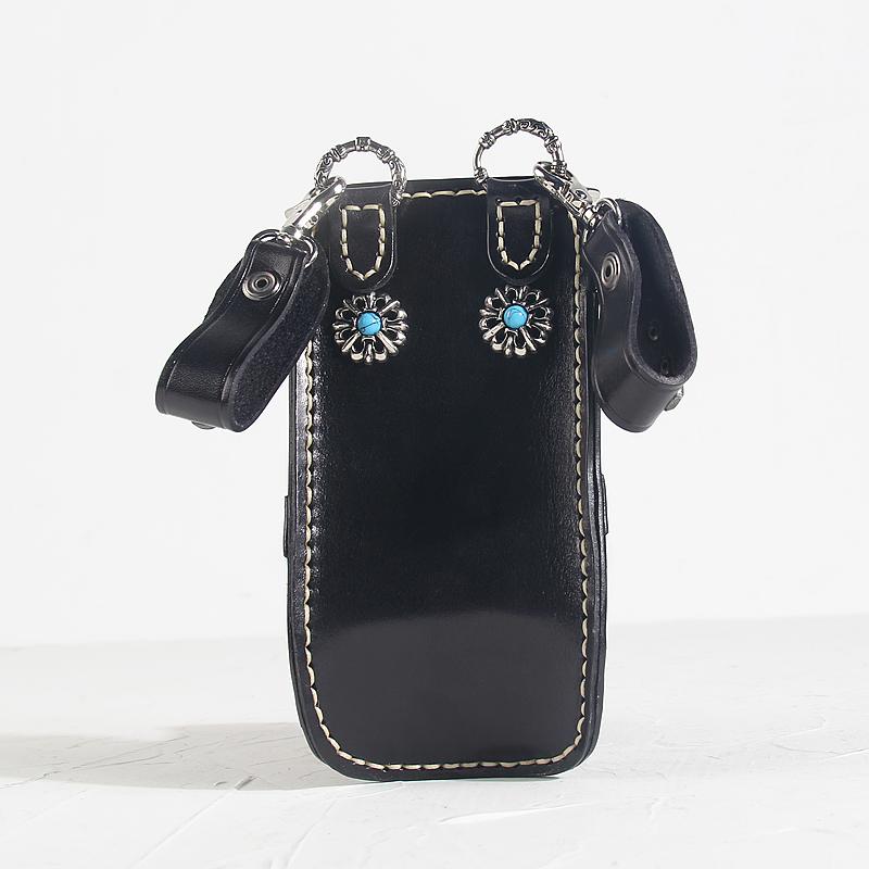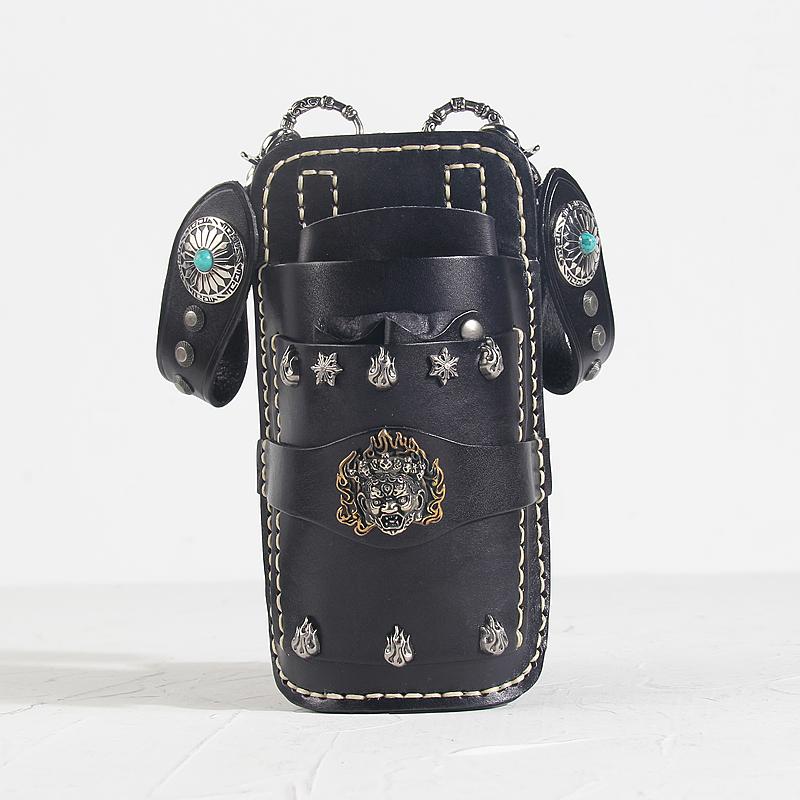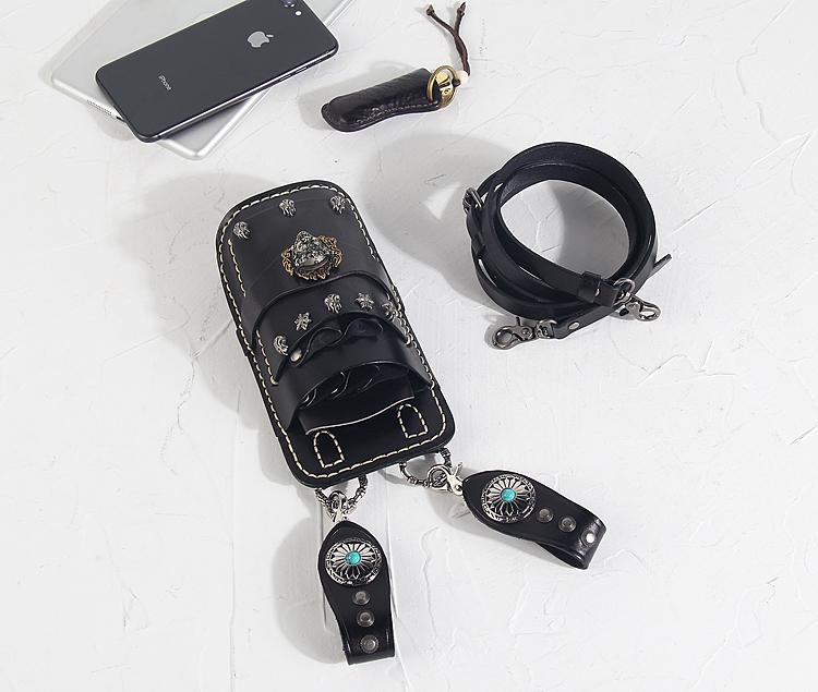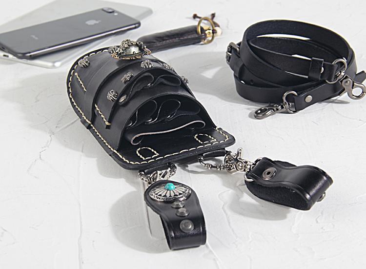 Design: Leather Belt Pouch Mens Small Cases Waist Bag Hip Pack Belt Bag Black Scissors Bag for Men