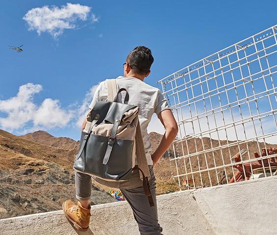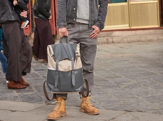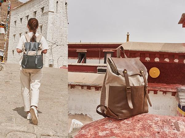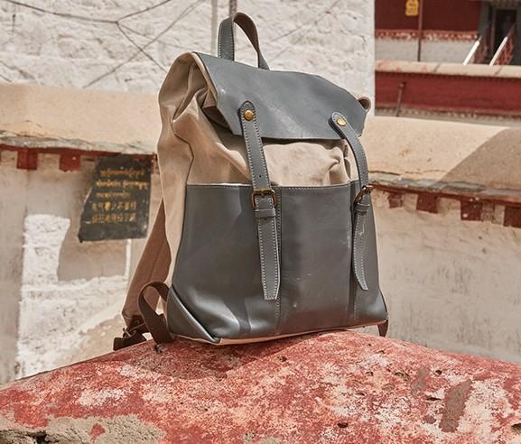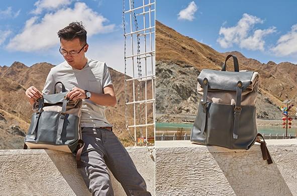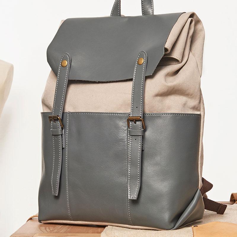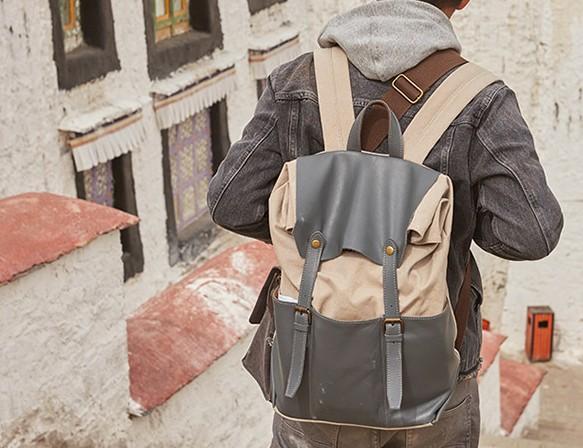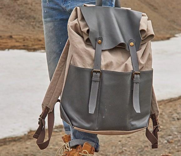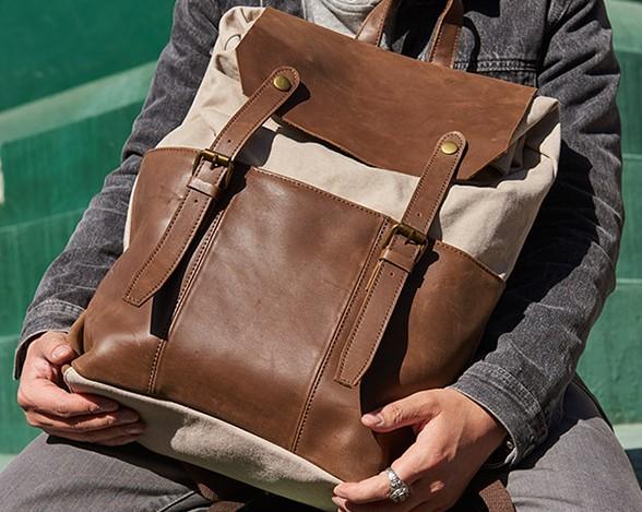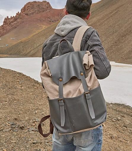 Design: Leather Canvas Mens Cool Backpack Canvas Travel Bag Canvas School Bag for Men
