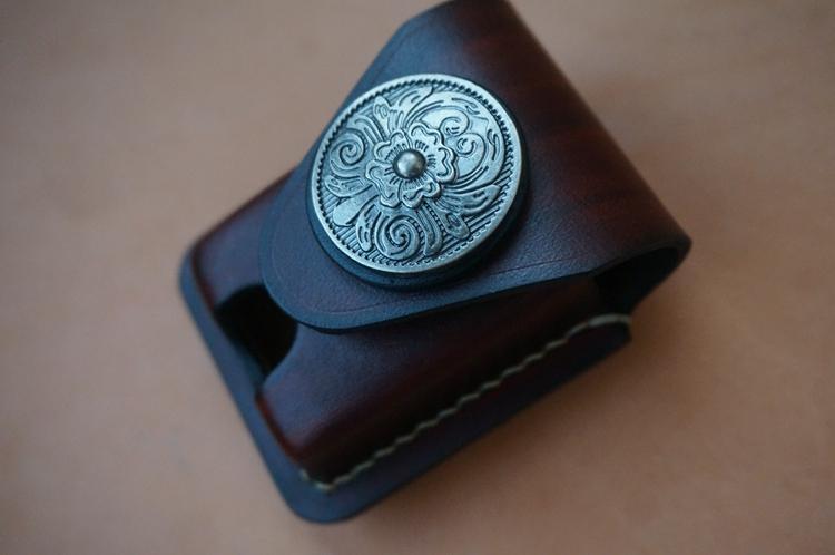 Design: Handmade Red Wine Thick Leather Lighter Cover Protective Lighter Cover For Men