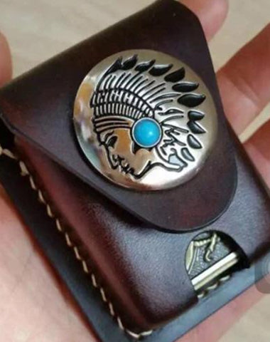 Style: Handmade Red Wine Thick Leather Lighter Cover Protective Lighter Cover For Men