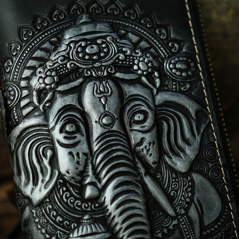Design: Leather Ganesha Tooled Biker Wallet Cool Handmade Leather Chain Wallet for Men