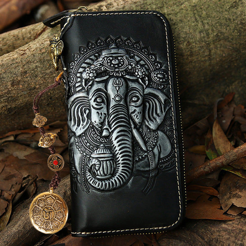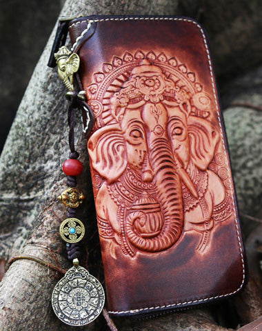 Style: Leather Ganesha Tooled Biker Wallet Cool Handmade Leather Chain Wallet for Men