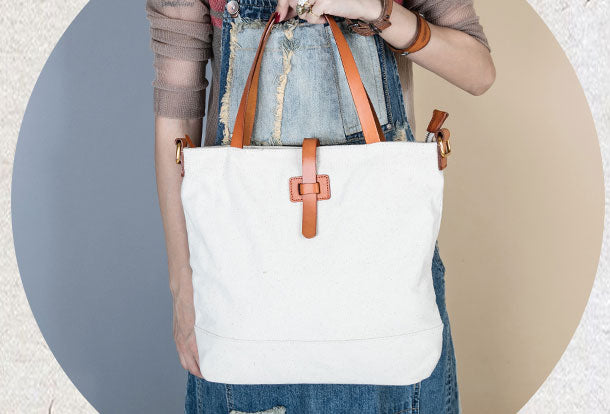 Leather Handbag Canvas Tote Bag Shoulder Bag Purse For Women