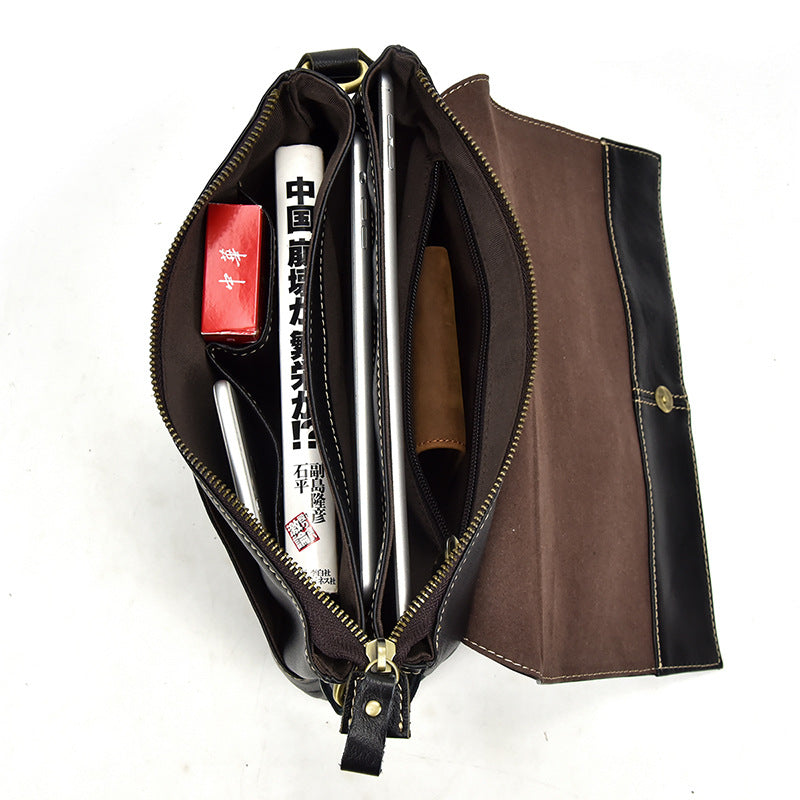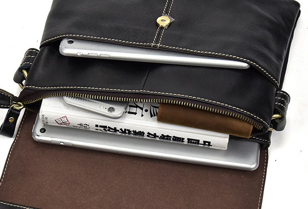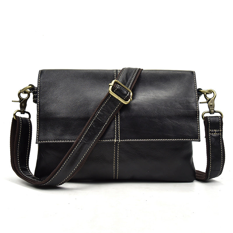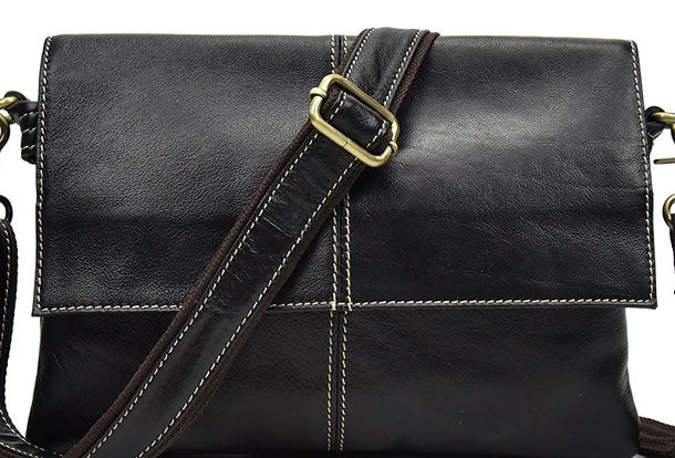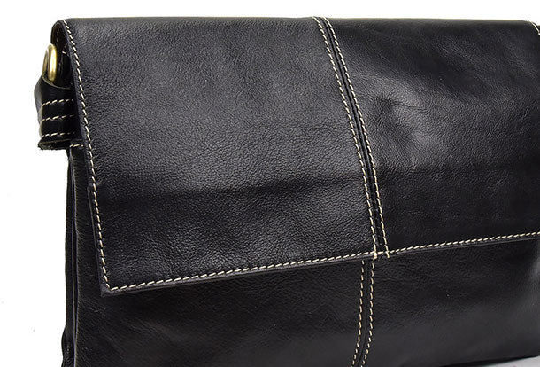 Design: Leather Men Black Messenger Bag Shoulder Bag for Men