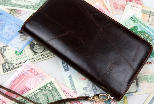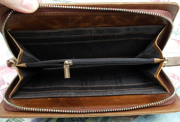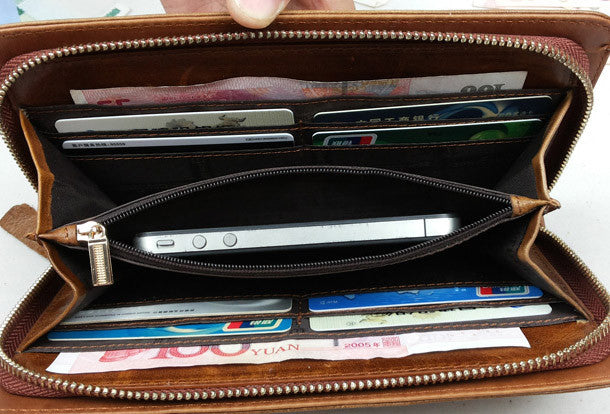 This is Clutch men leather Vintage brown coffee zip wallet men long wallet purse clutch.The wallet is bifold,color is brown,coffee.There are 2?full size bill slots/holders, 1?zip holders,8?ID/credit card slots/holders,2?side?holders.