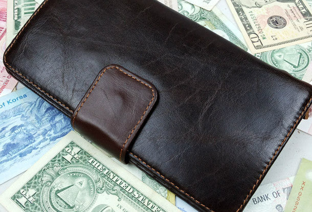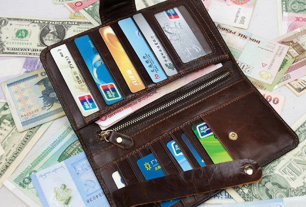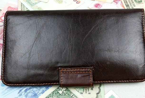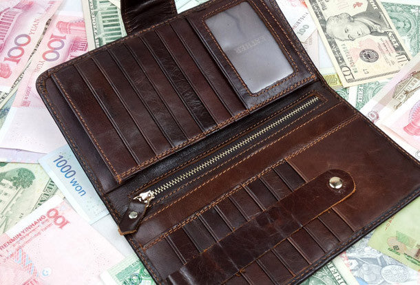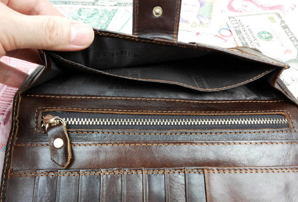 This is Clutch men leather Vintage dark brown?wallet men multi card holders?long wallet purse clutch.The wallet is bifold,color is dark brown.There are 3?full size bill slots/holders, 1?zip holders,16 ID/credit card slots/holders,1?coin?slot,1 photo holders.