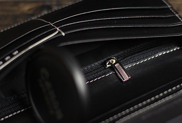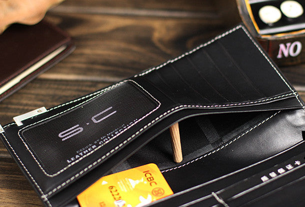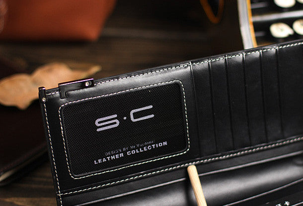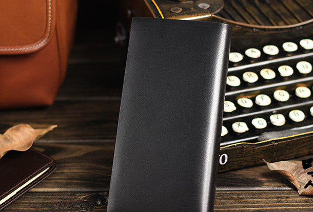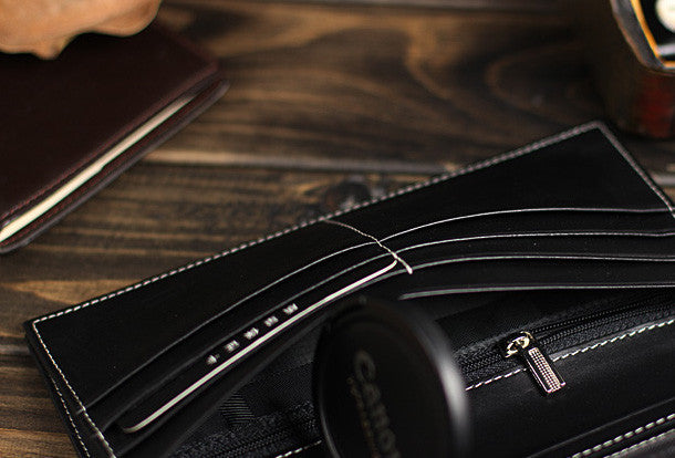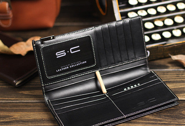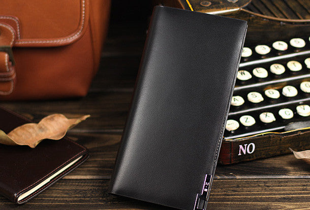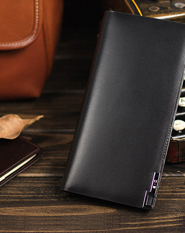 This is leather men clutch black vintage modern fashion phone?clutch men long wallet purse clutch.The wallet is bifold,color is black.There are 3?full size bill slots/holders, 1 coin change?holder,11?ID/credit card slots/holders,1 photo holder.