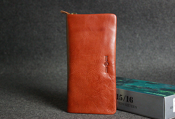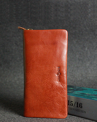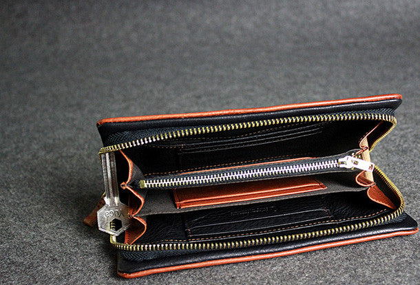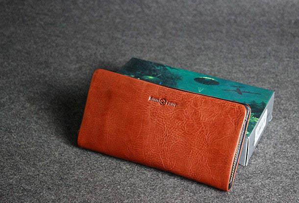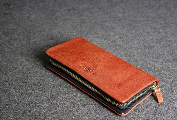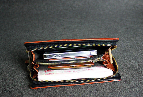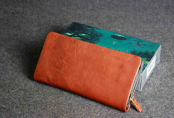 This is leather men clutch brown?vintage modern fashion zip clutch men long wallet purse clutch.The wallet is bifold,color is brown?.There are 3?full size bill slots/holders,10 ID/credit card slots/holders,1?zip?holder.