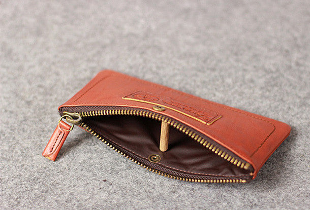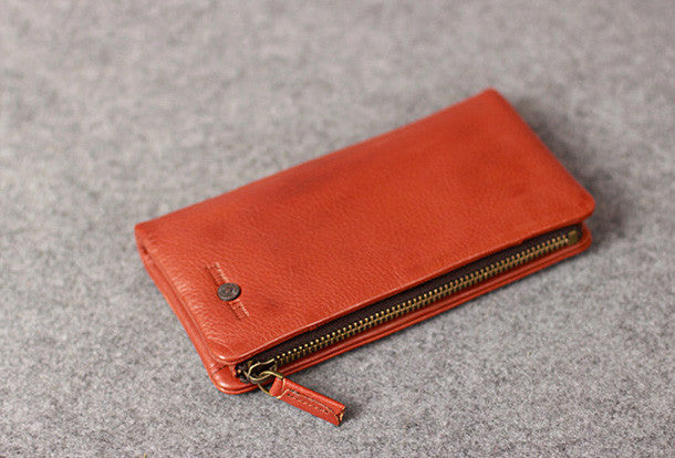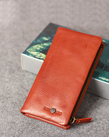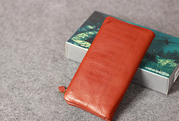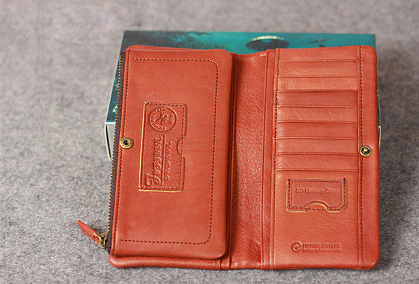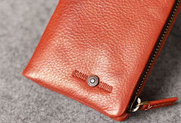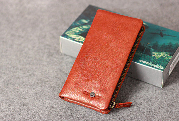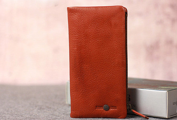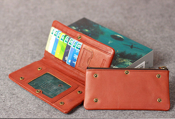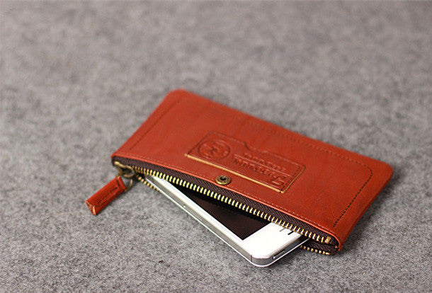 Leather men long wallet clutch brown vintage zip phone clutch men long wallet purse
