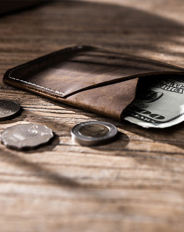 Leather Men Slim Small Card Wallet Change Small Wallet for Men