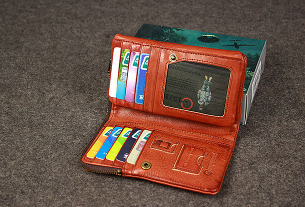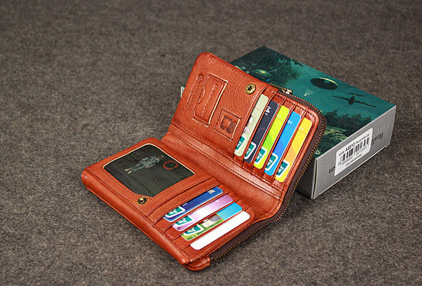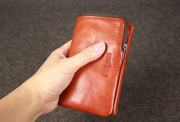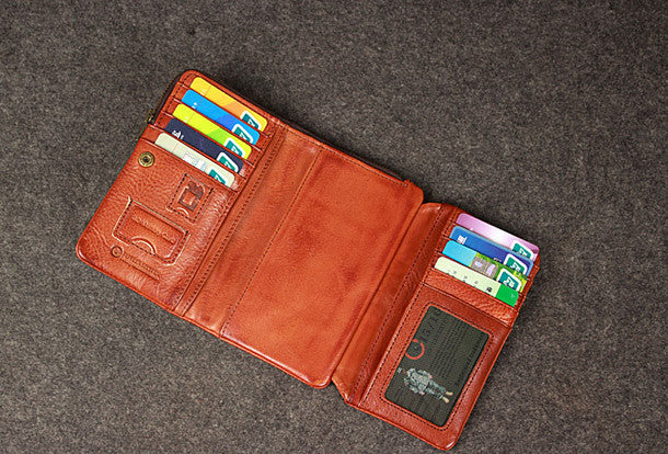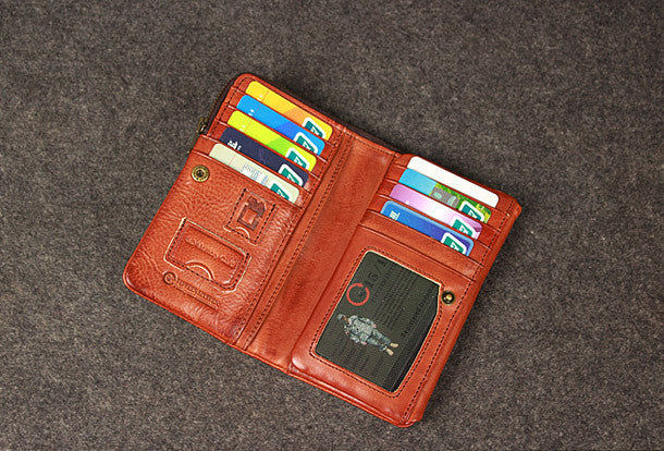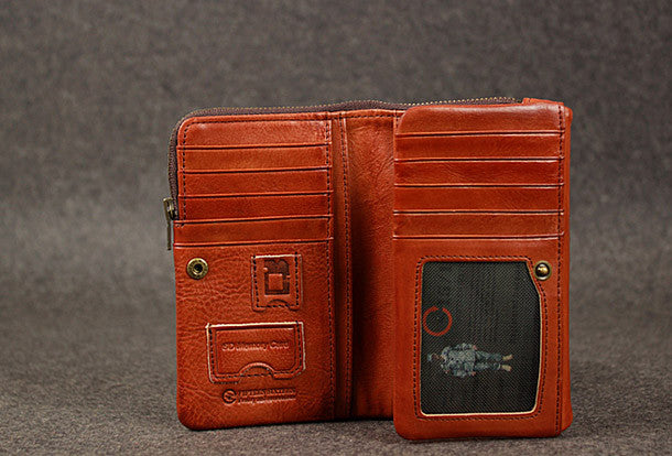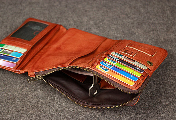 This is?Leather men trifold long wallet clutch brown vintage zip clutch men long wallet purse.The wallet is trifold,color is brown?.There are 1?full size bill slots/holders, 15?ID/credit card slots/holders,5?ID?holders,2 photo holder.