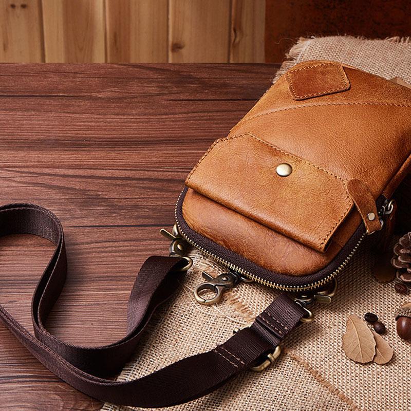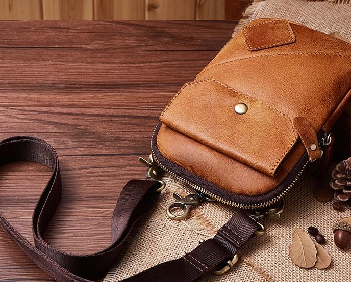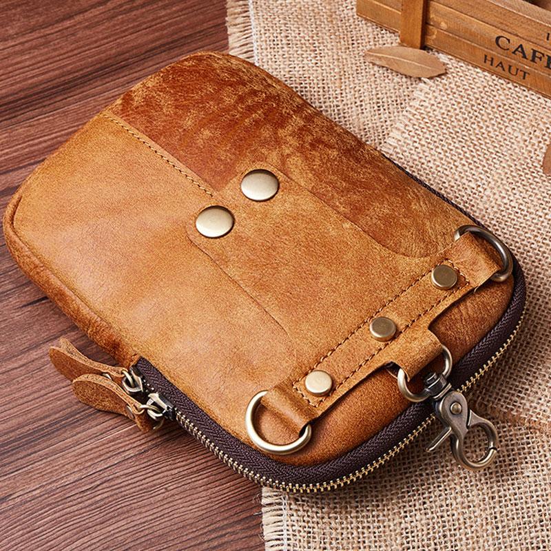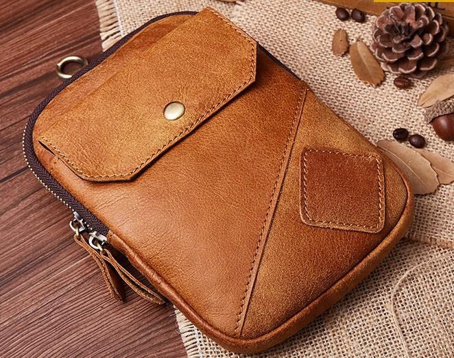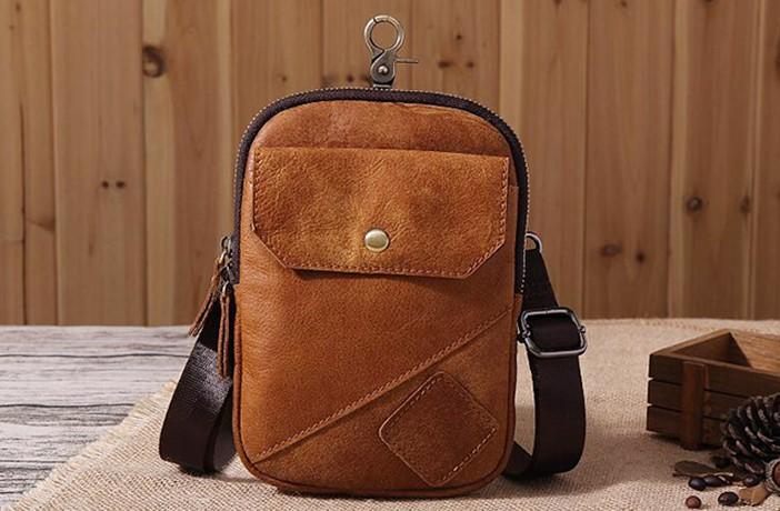 Design: Leather Mens Cell Phone Holster Belt Pouch Mens Waist Bag Shoulder Bag for Men
