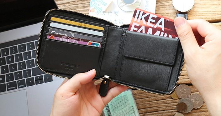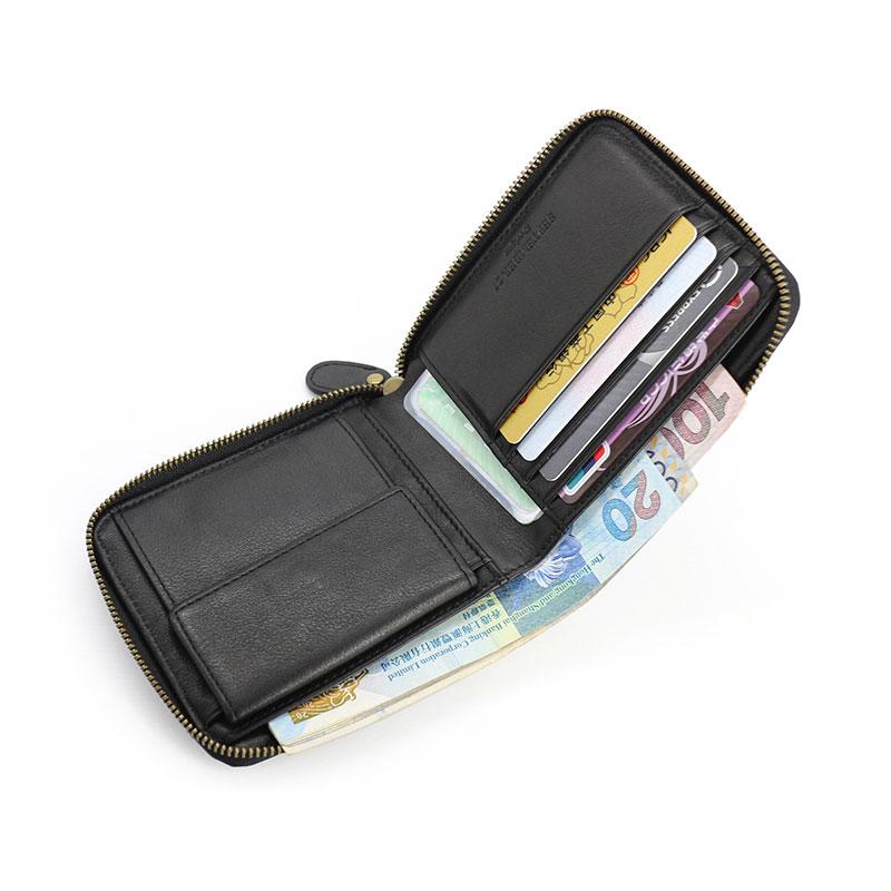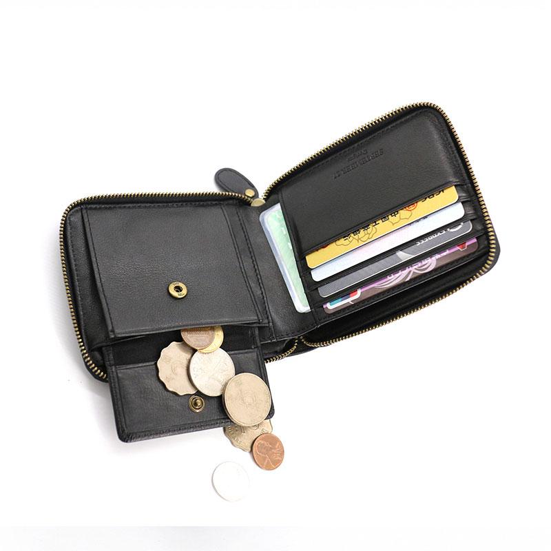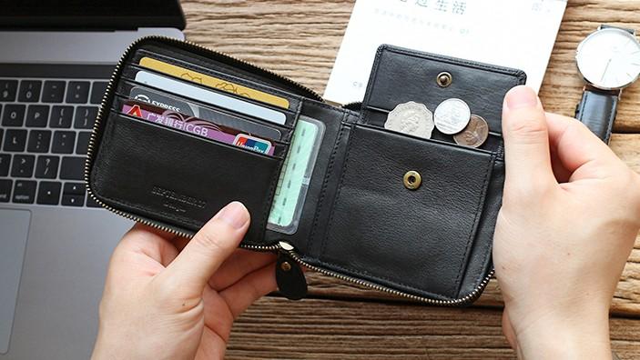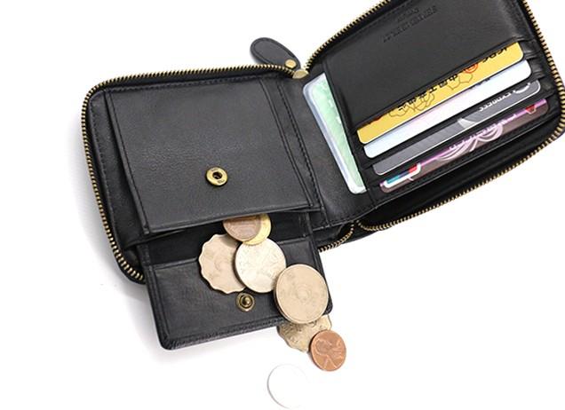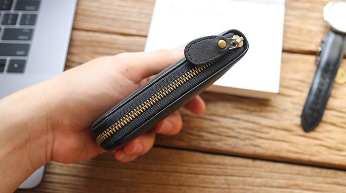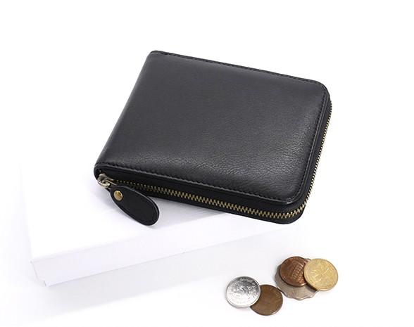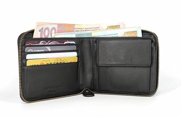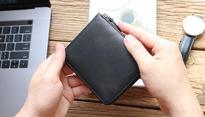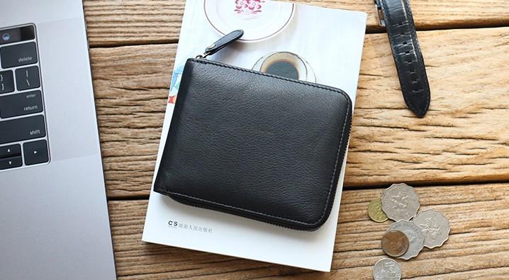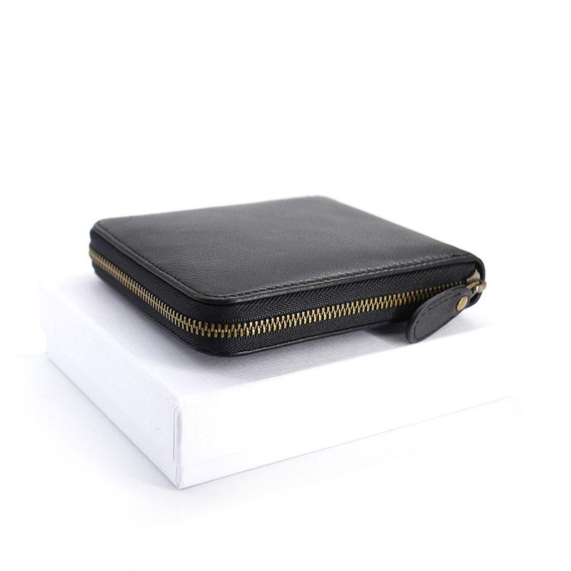 Design: Leather Mens Black Zipper Small Wallet Front Pocket Wallet Small Wallet for Men