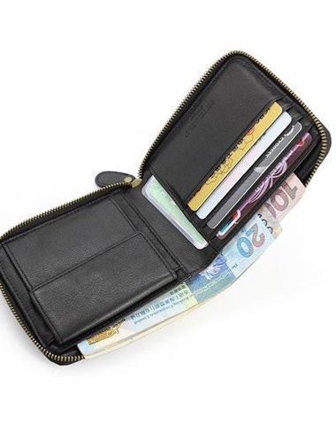 Style: Leather Mens Black Zipper Small Wallet Front Pocket Wallet Small Wallet for Men