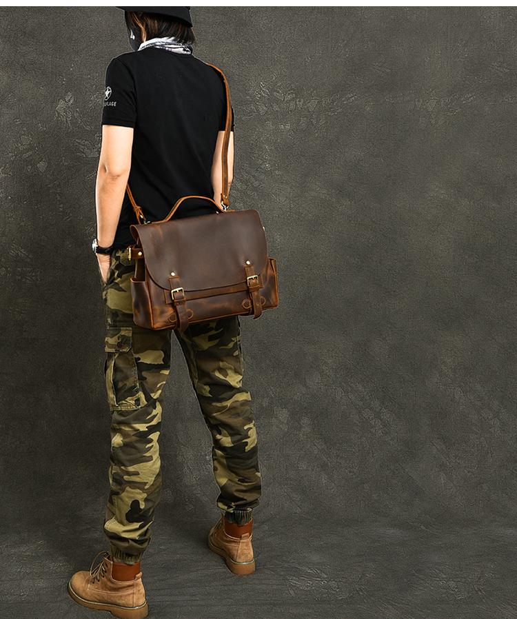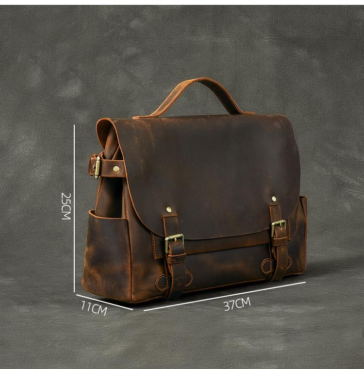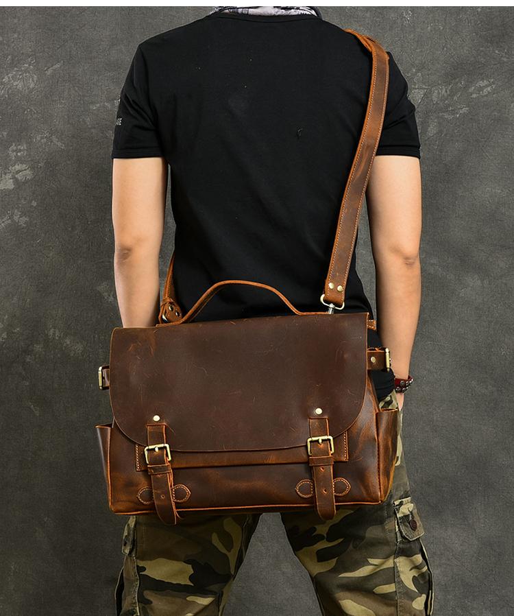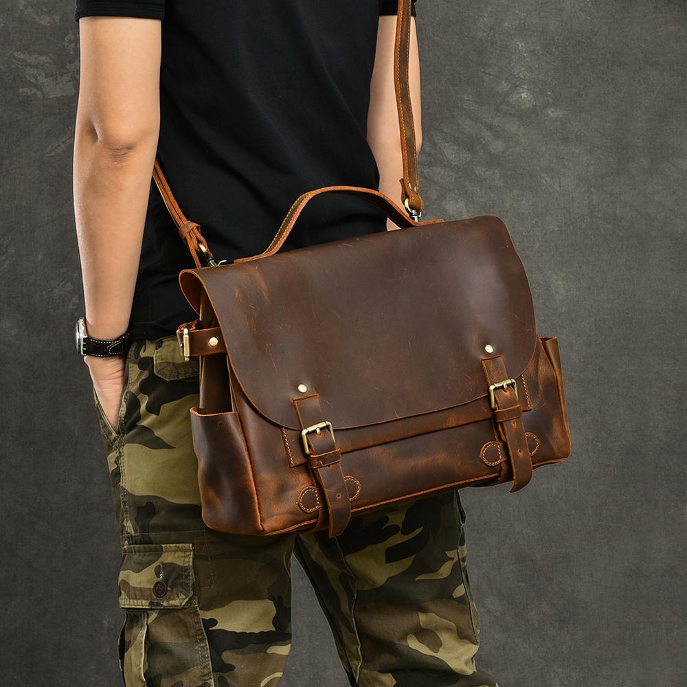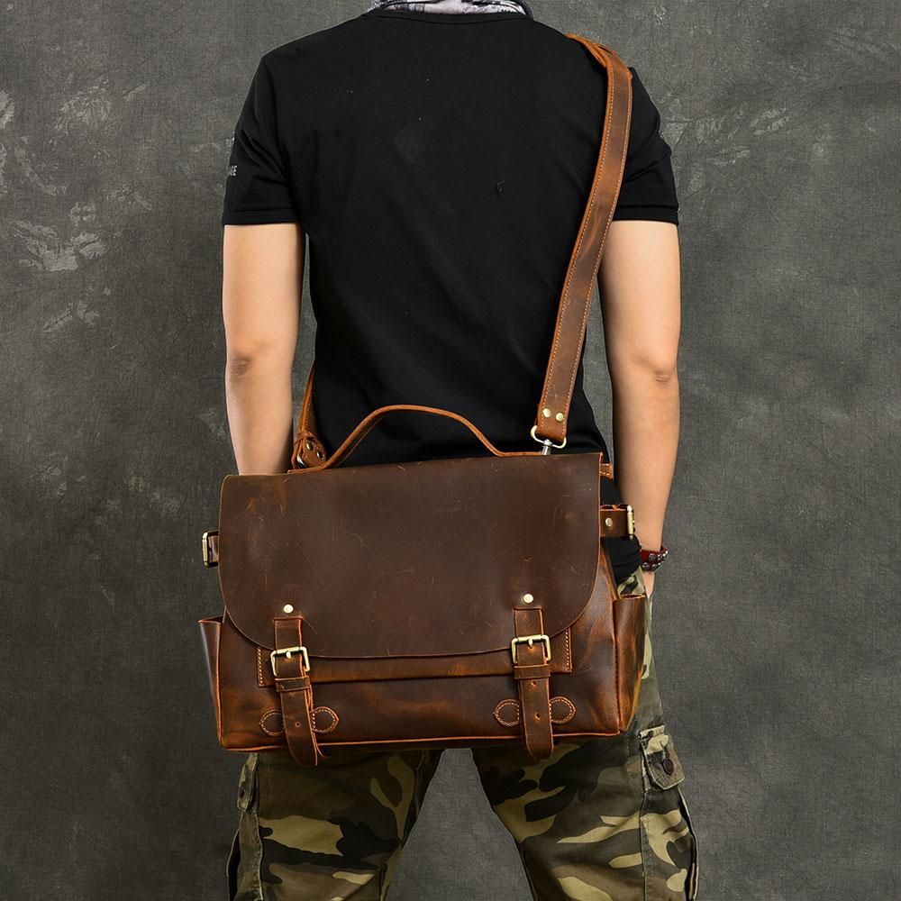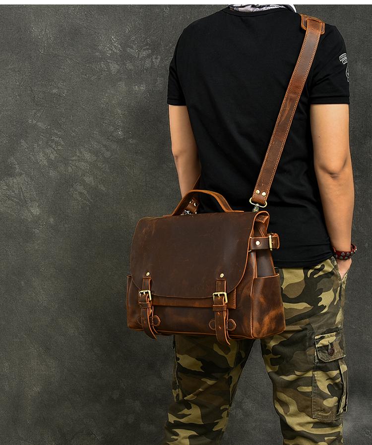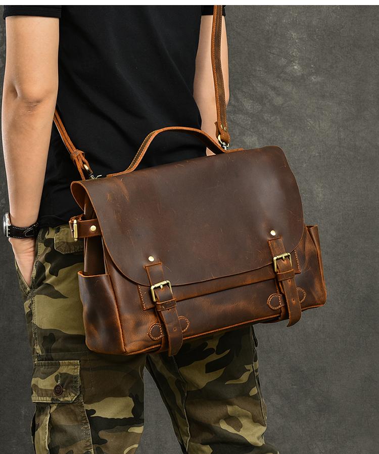 Style: Leather Mens Brown Briefcase 12'' Laptop Bag Crossbody Messenger Bag Shoulder Bag For Men