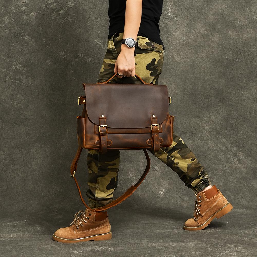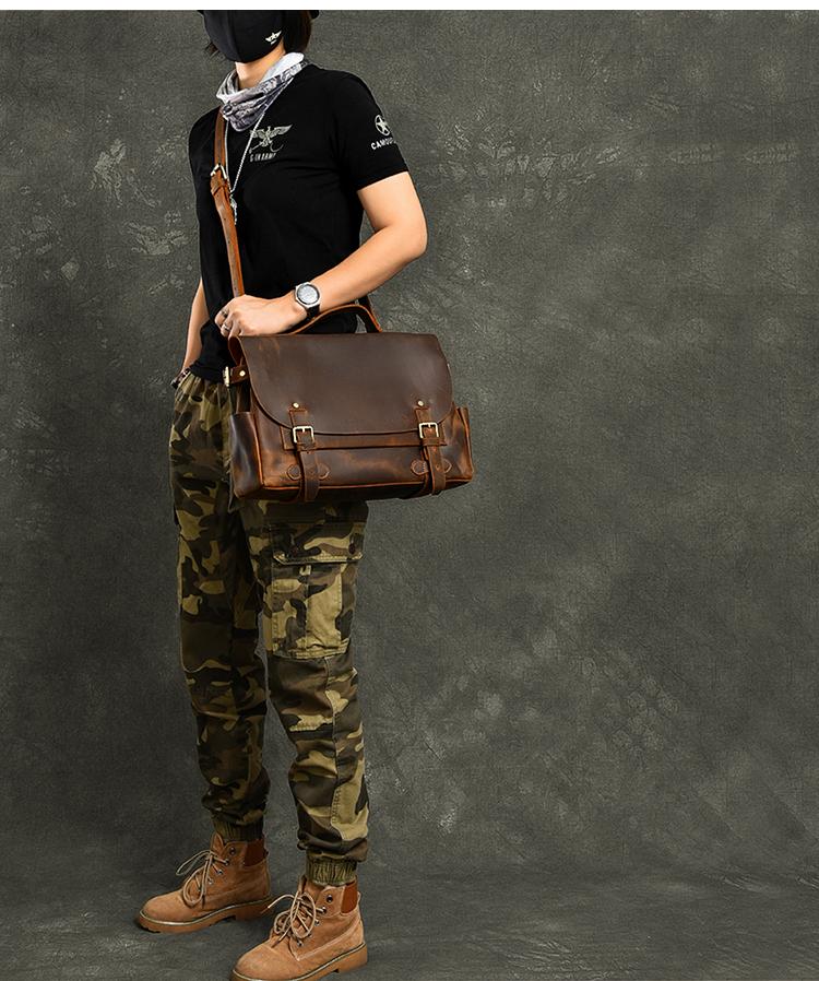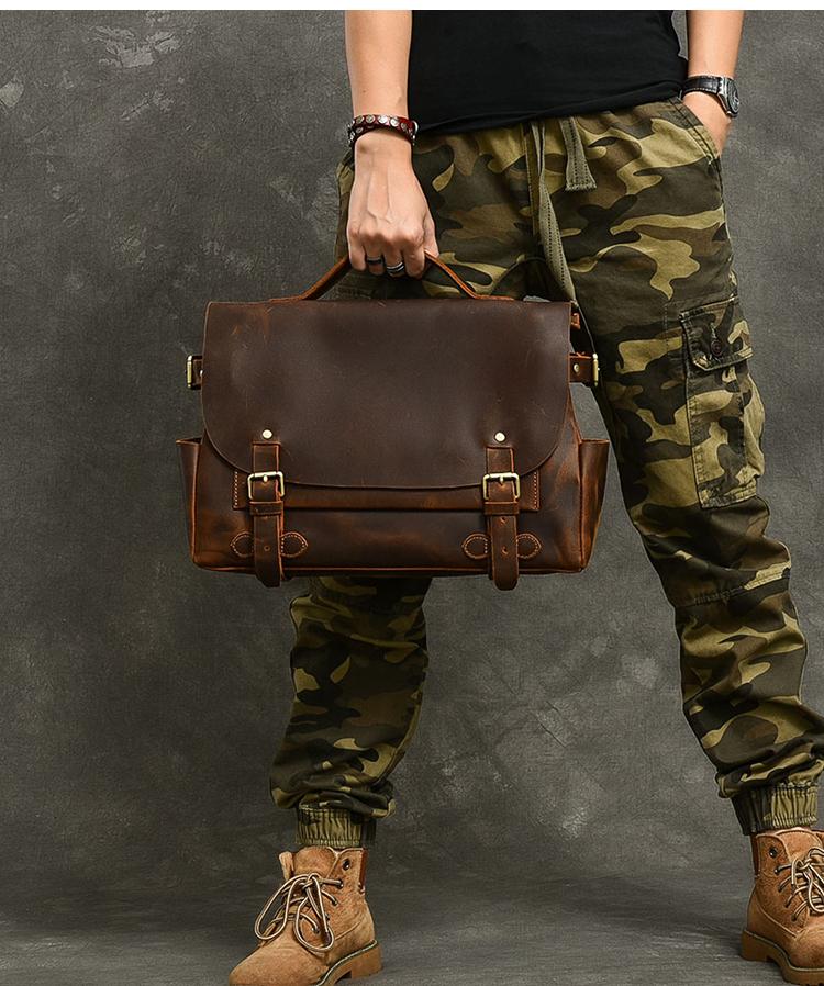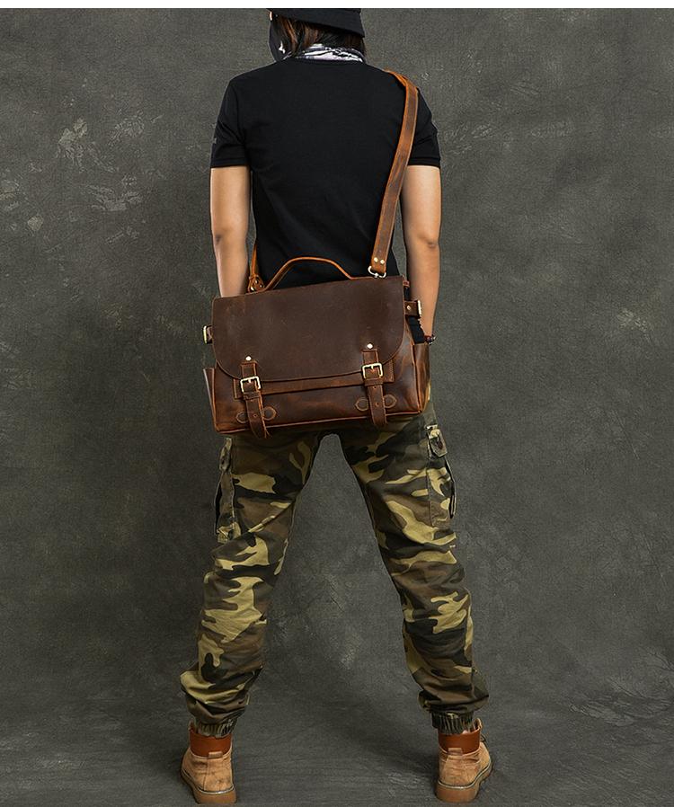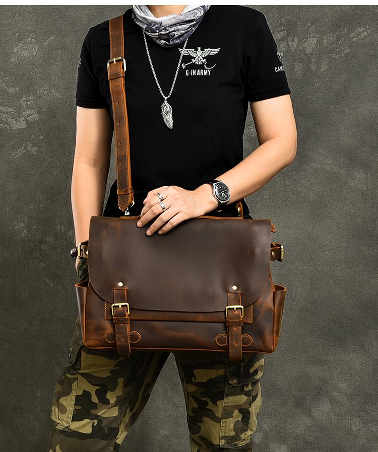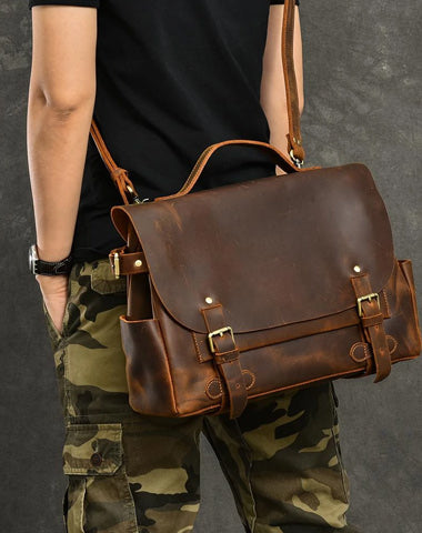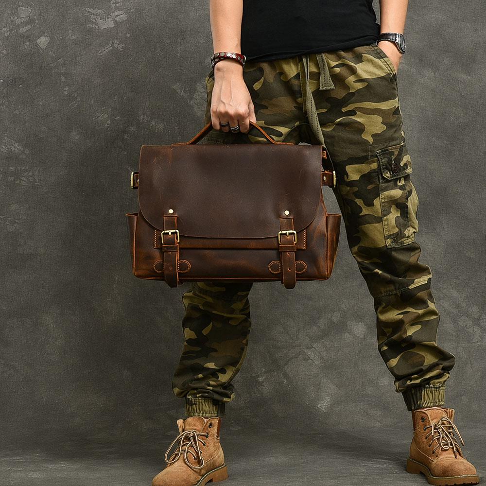 Style: Leather Mens Brown Briefcase 12'' Laptop Bag Crossbody Messenger Bag Shoulder Bag For Men