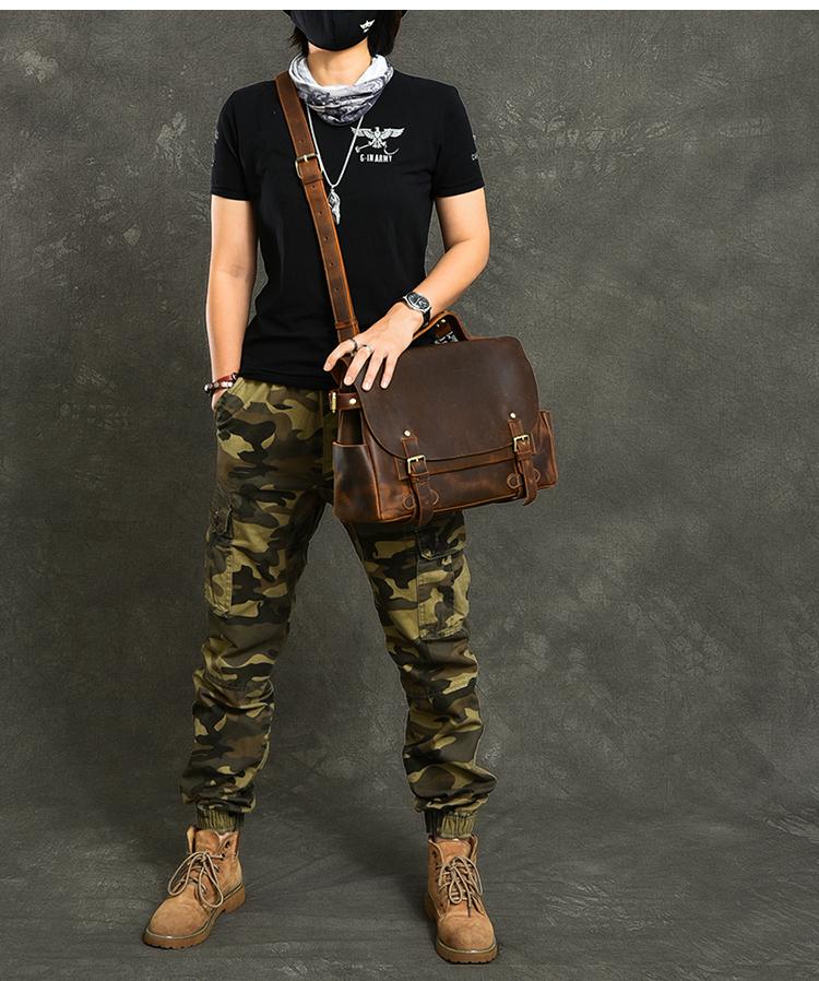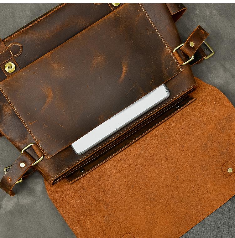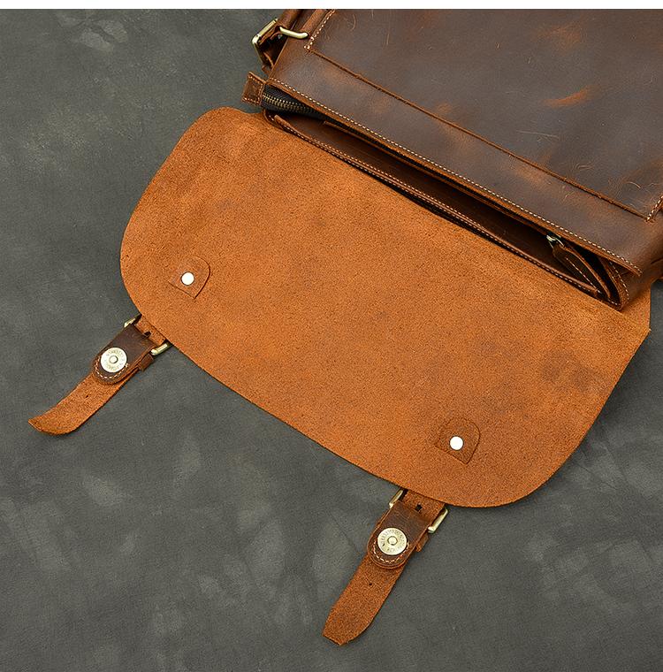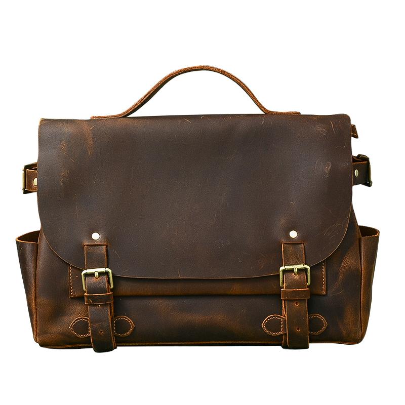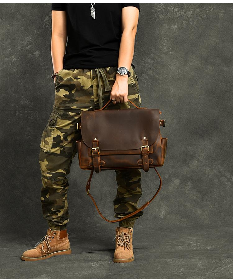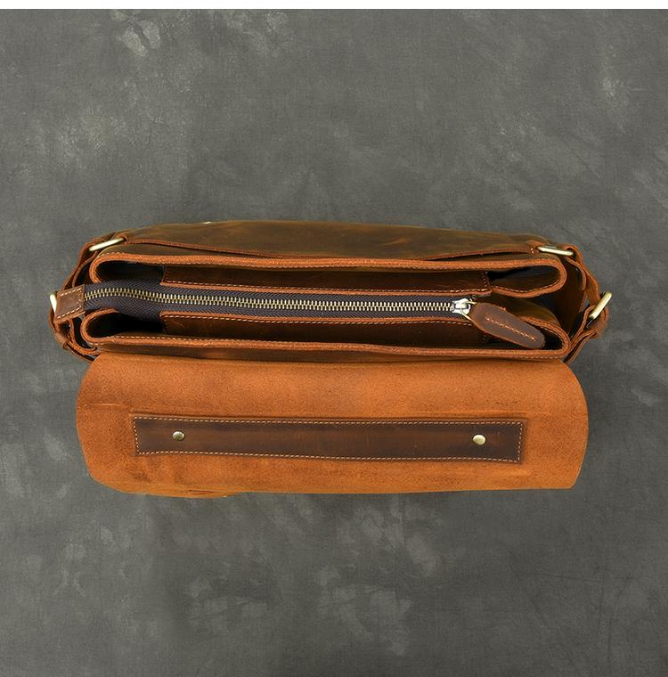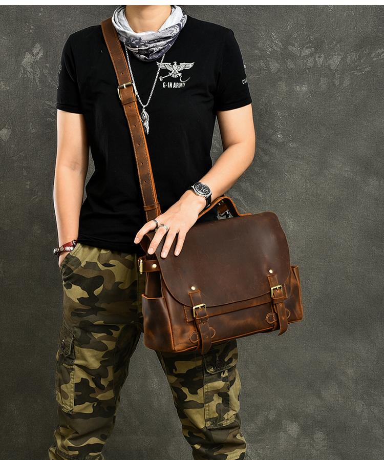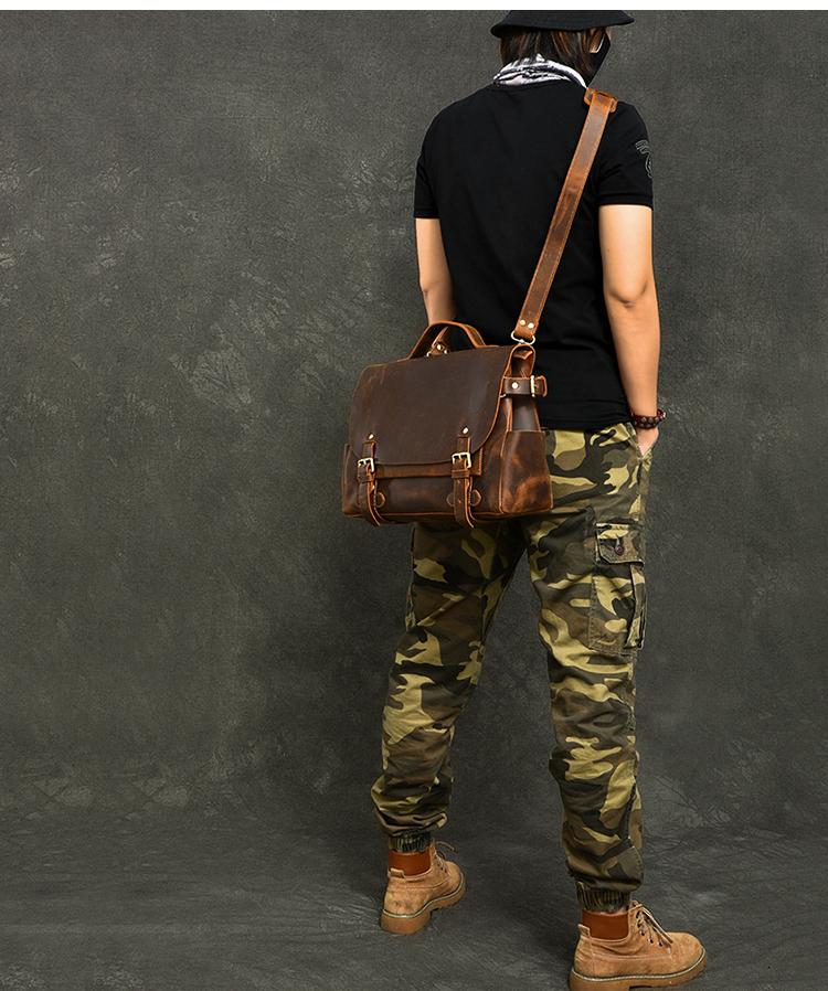 Style: Leather Mens Brown Briefcase 12'' Laptop Bag Crossbody Messenger Bag Shoulder Bag For Men