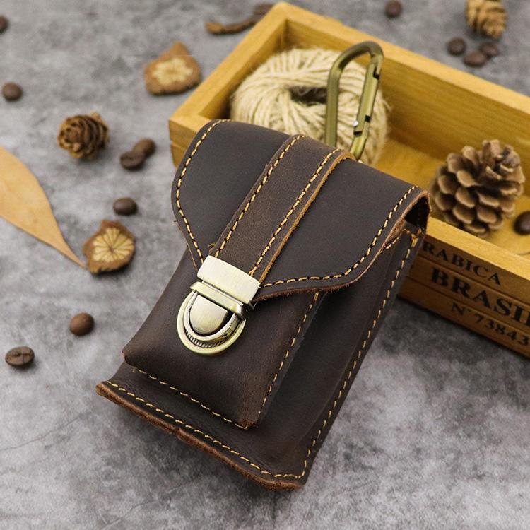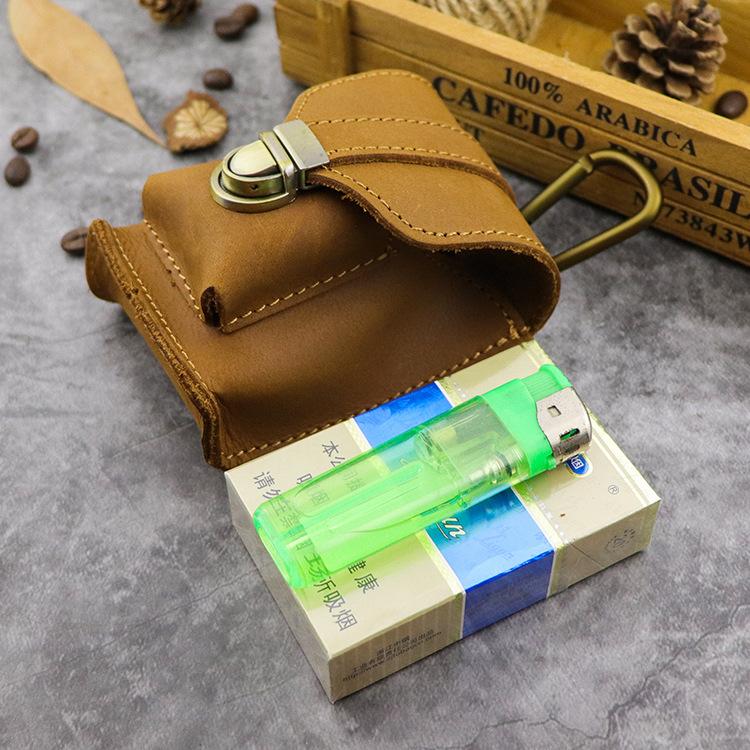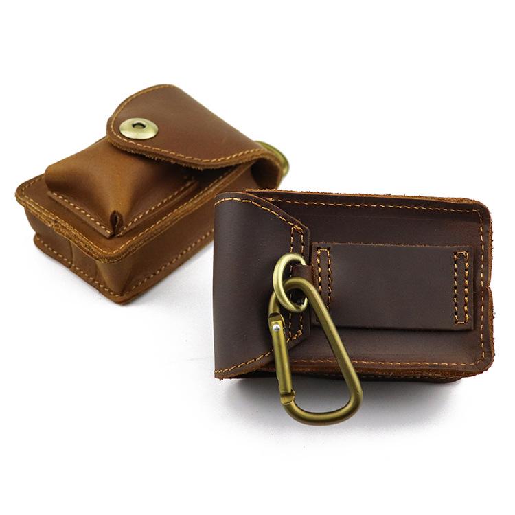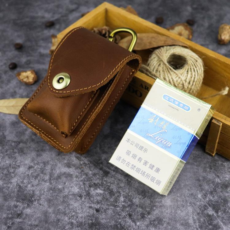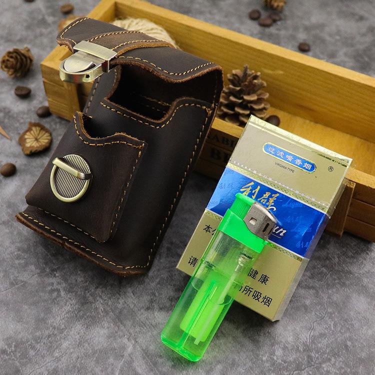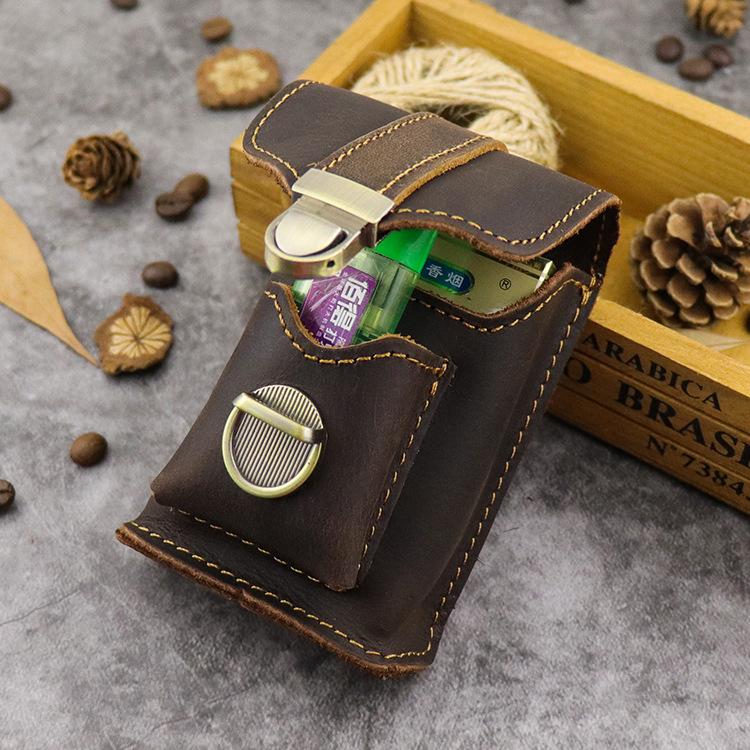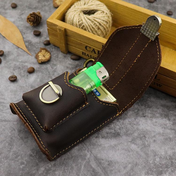 Style: Leather Mens Brown Cigarette Cases with Lighter Holder With Belt Loop Cigarette Holder For Men