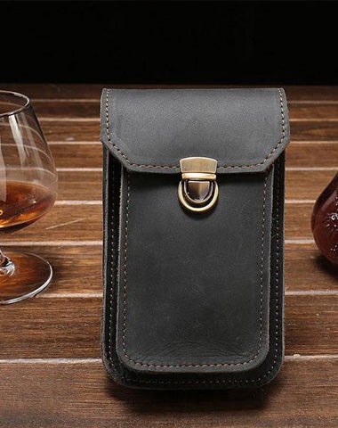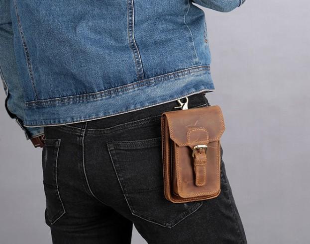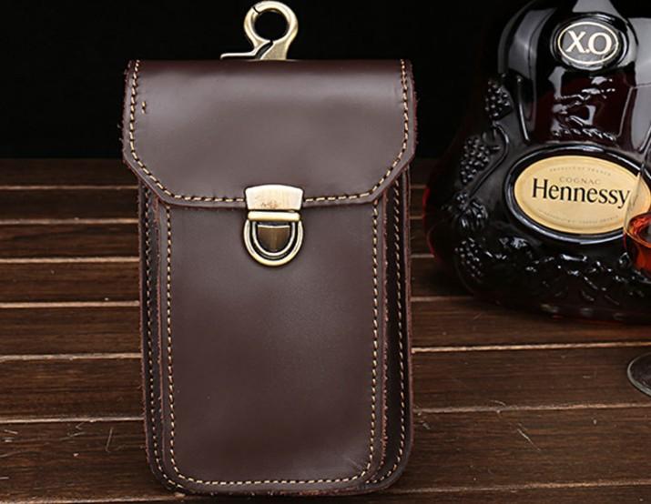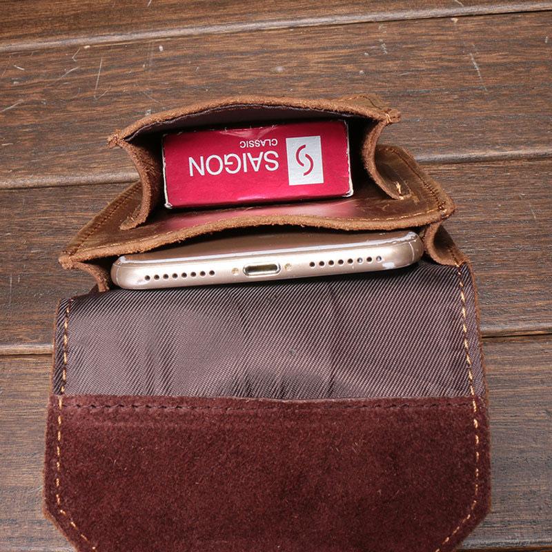 Design: Leather Mens Cigarette Case with Belt Loop Cell Phone Holster Belt Pouch for Men