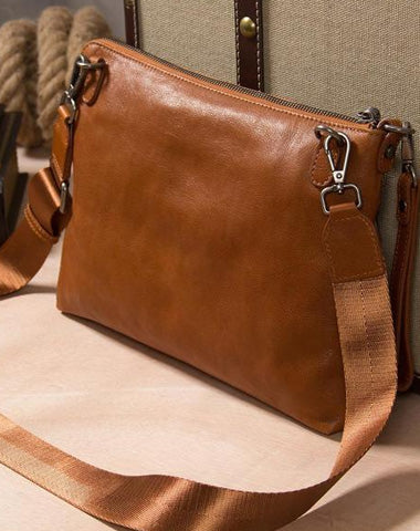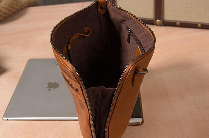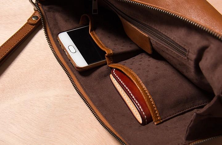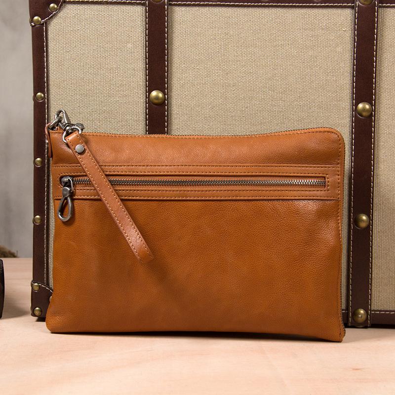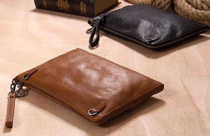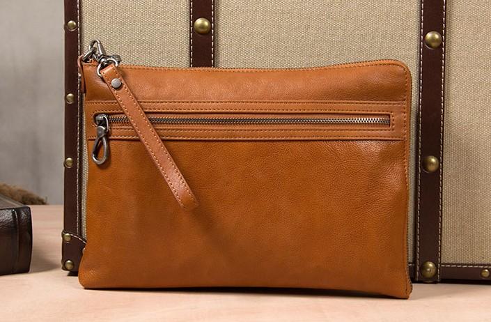 Leather Mens Clutch Wristlet Bag Brown Shoulder Bag Zipper Clutch for Men