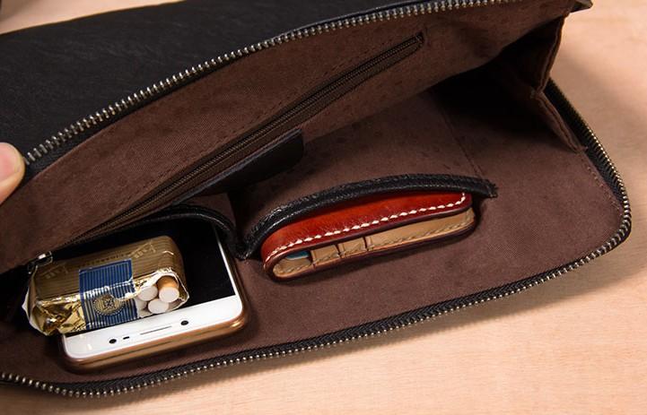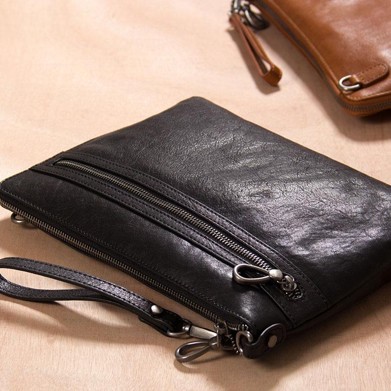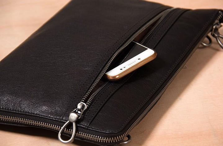 Design: Leather Mens Clutch Wristlet Bag Black Shoulder Bag Zipper Clutch for Men