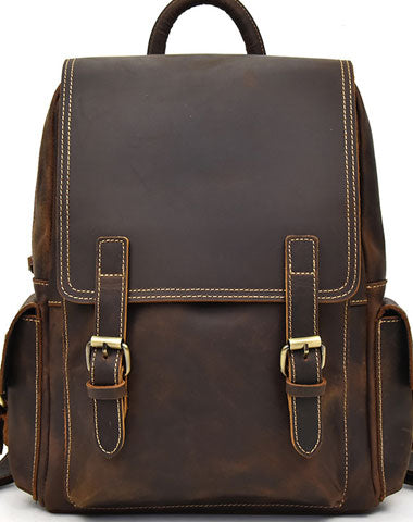 Style: Leather Mens Cool Backpack Large Coffee Travel Bag Hiking Bag For Men