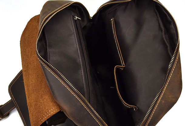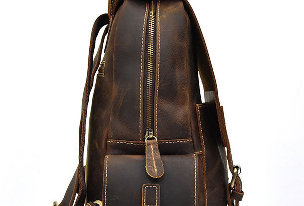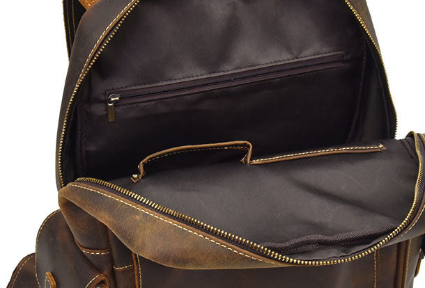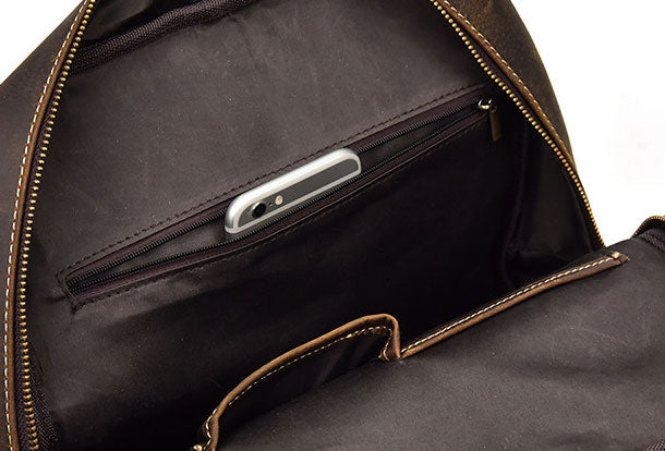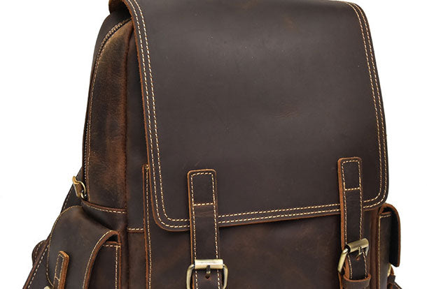 Design: Leather Mens Cool Backpack Large Coffee Travel Bag Hiking Bag For Men