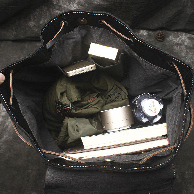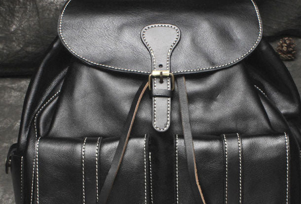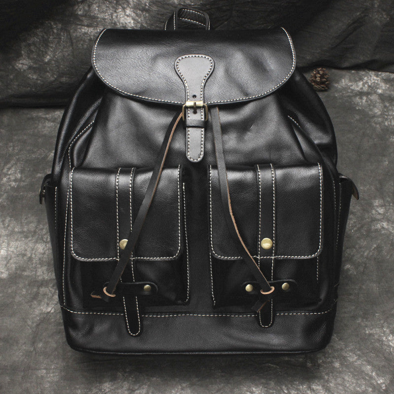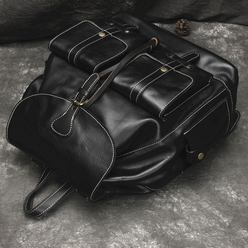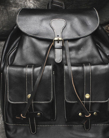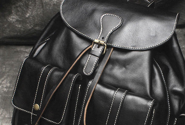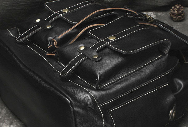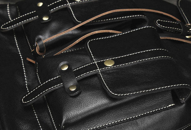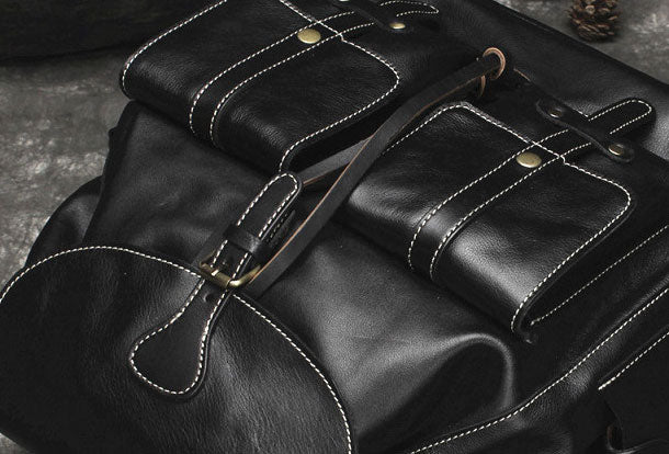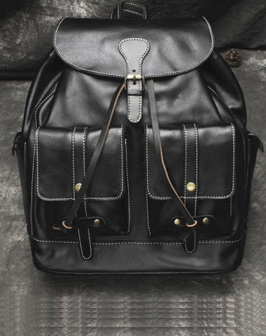 Design: Leather Mens Cool Black Backpack for School Travel Bag Hiking Bag For MenOverview:
