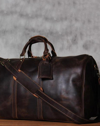 Coffee Leather Mens Cool Large Weekender Bag Travel Bag for Men