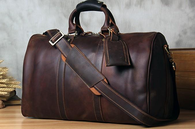 Design: Leather Mens Cool Large Weekender Bag Travel Bag for Men