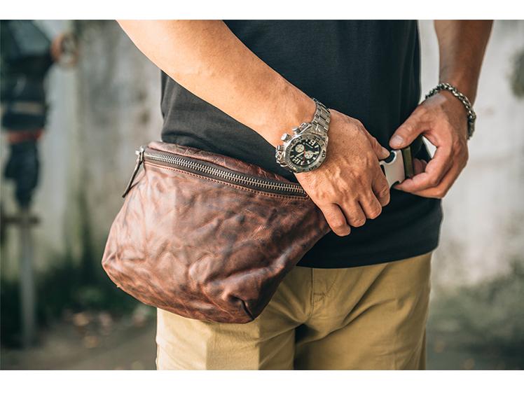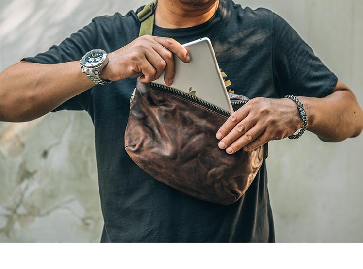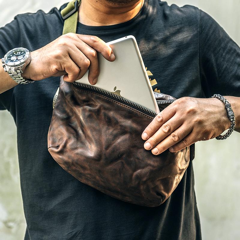 Design: Leather Mens Cool Sling Bag Crossbody Bag Chest Bag Fanny Pack for men