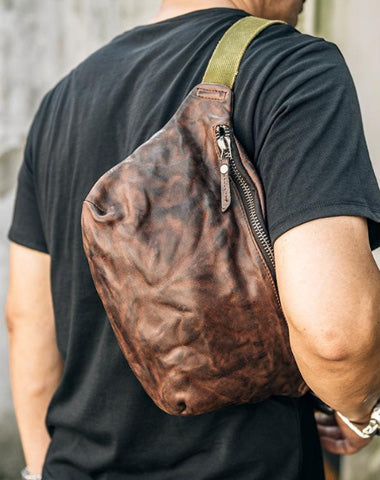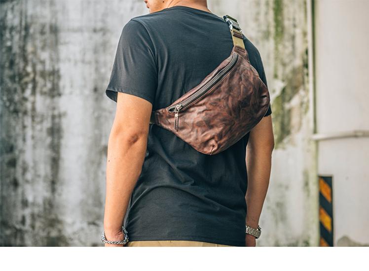 Style: Leather Mens Cool Sling Bag Crossbody Bag Chest Bag Fanny Pack for men